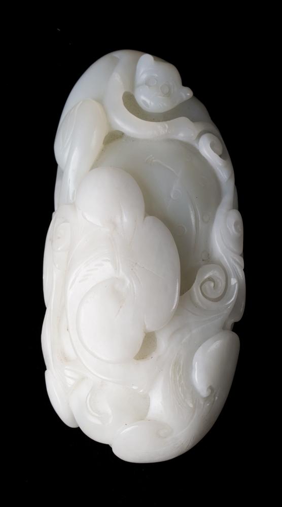 Finely carved to depict ruyi with a monkey at the top. 3.75" L, circa 20th century.