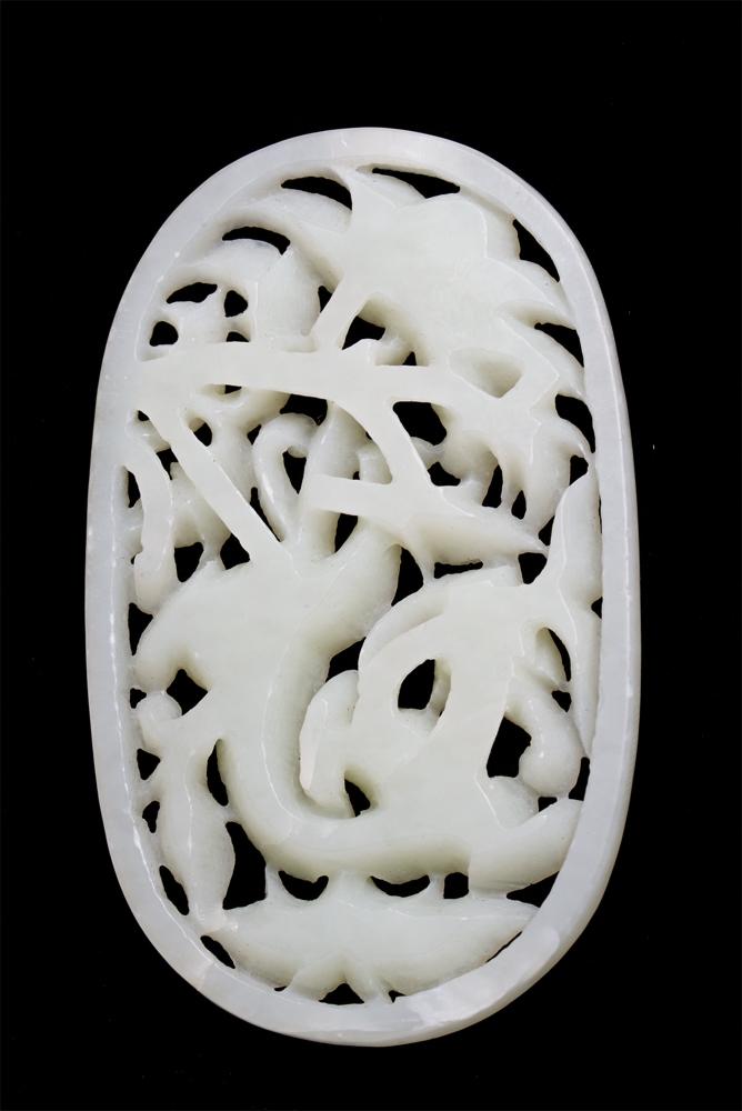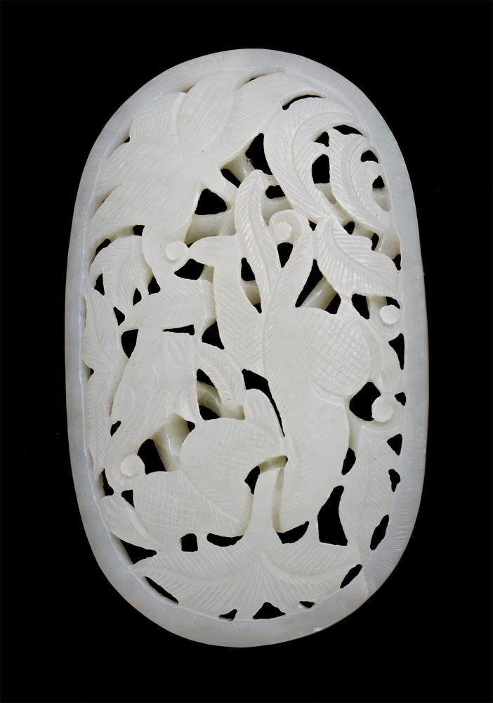 Finely carved to depict openwork of lotus and qilin. 3.5" L, circa 20th century.