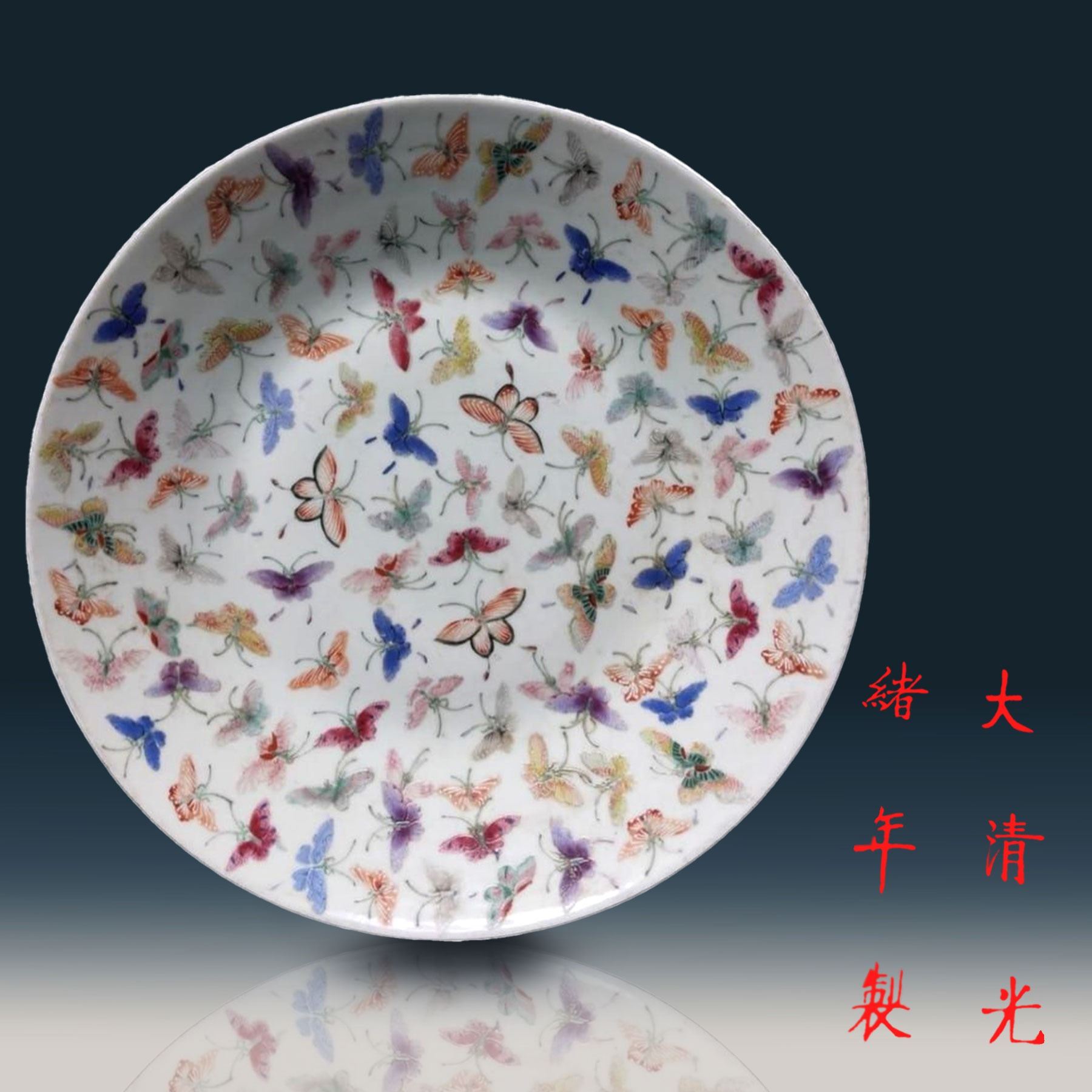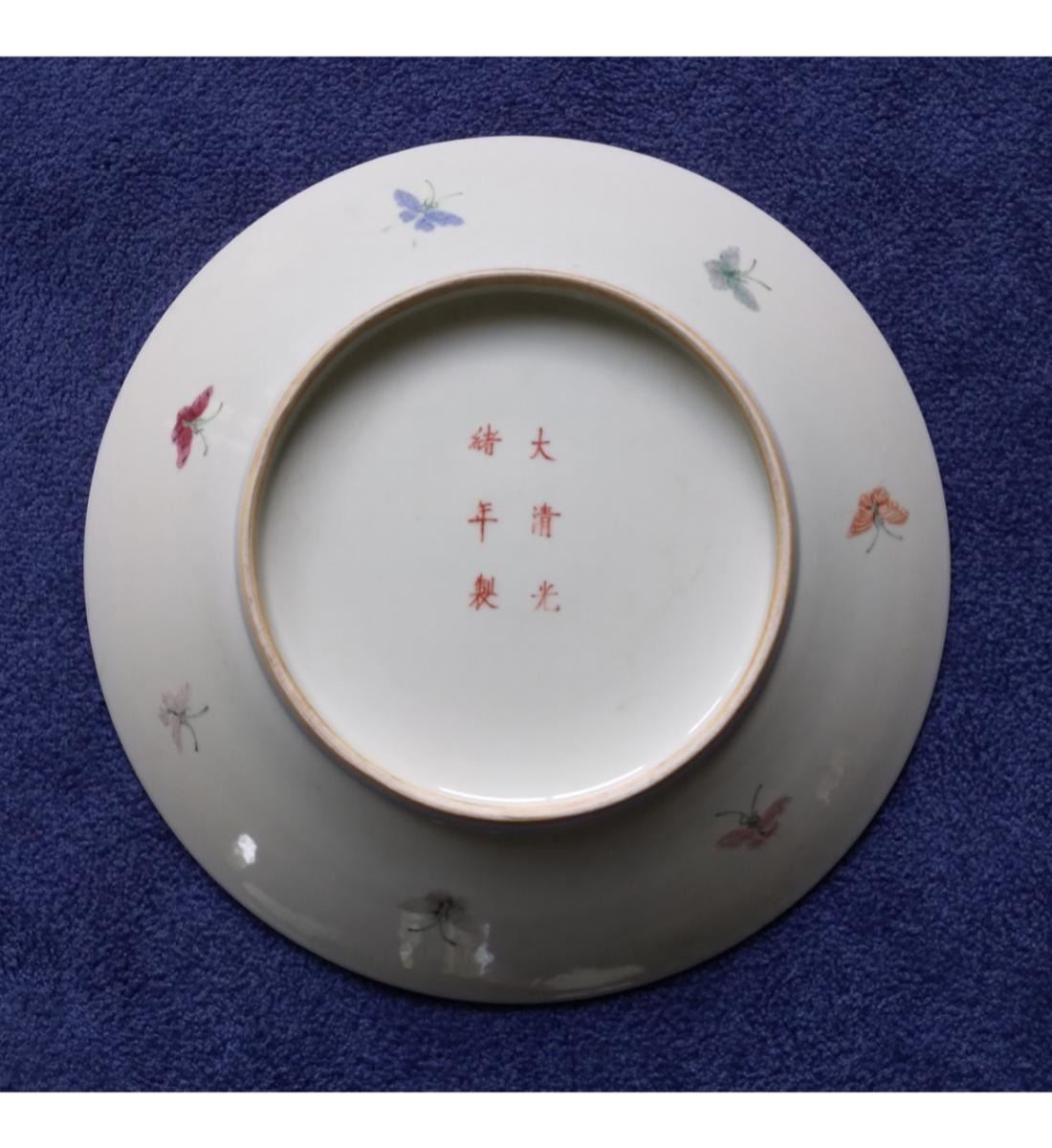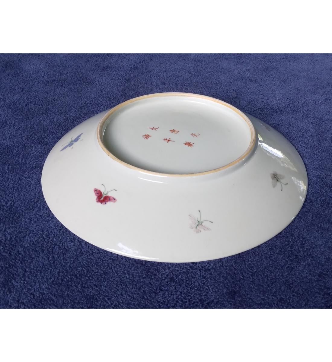 A Fine Chinese Famille Rose Charger With Hand Painted Butterflies 6 Character Guangxu Mark. Measure 33 Cm X 5.5 CM. Provenance: One Person Private Estate Central Florida.