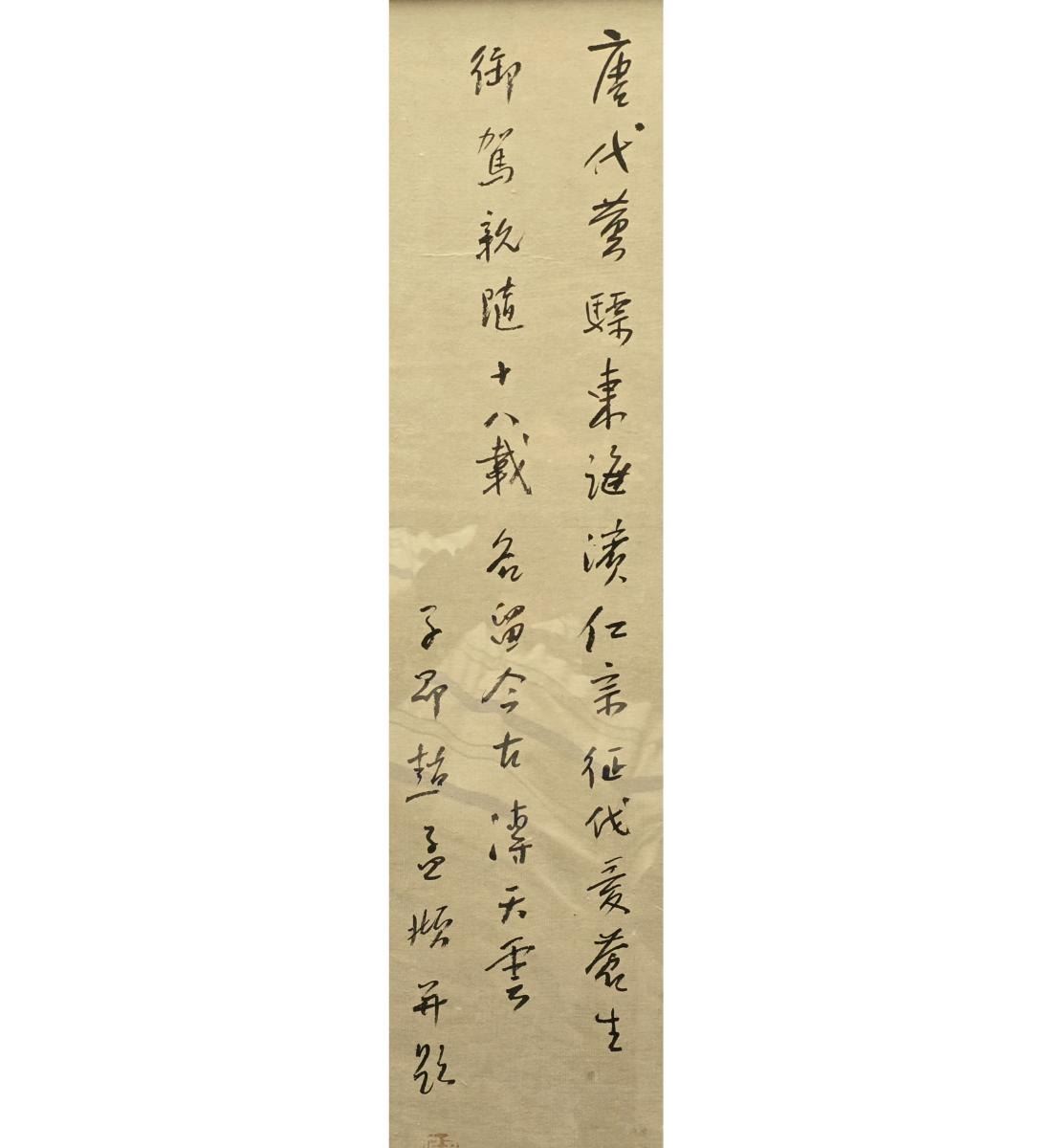 A Fine Chinese Painting With Calligraphy And Red Seal Tang Dynasty Style. Frame Measure 31.5" X 38 1/2", Sight 28.5" 35.5". Provenance: One Person Private Estate Central Florida.