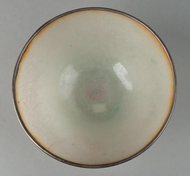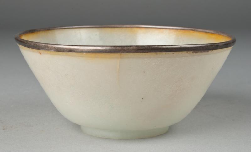 A very fine jade bowl of translucent jade with an extremely fine polish, with finely carved foot ring, and silver rim, 5.5"W x 2.5"H, circa mid. Qing period, very nice piece.