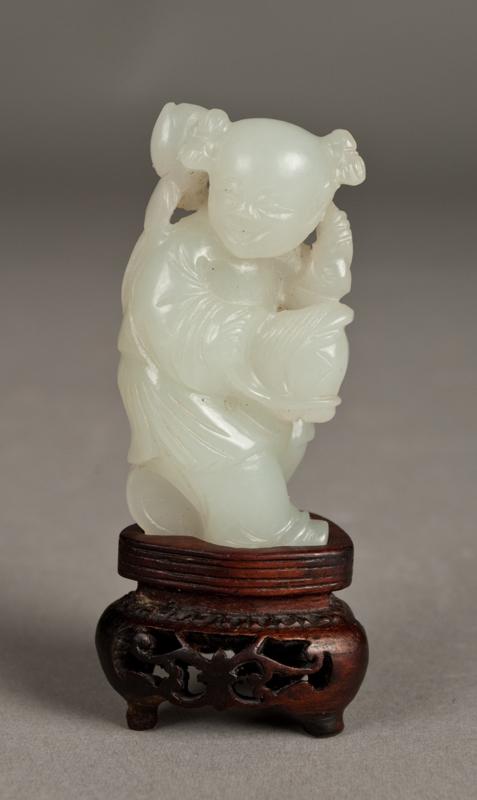 Finley carved to depict a little boy on a hobby horse, the stone with a very fine polish,2.75"H, including stand, circa 18th or early 19th century. Provenance Haig Gallery, Rochester Mi.