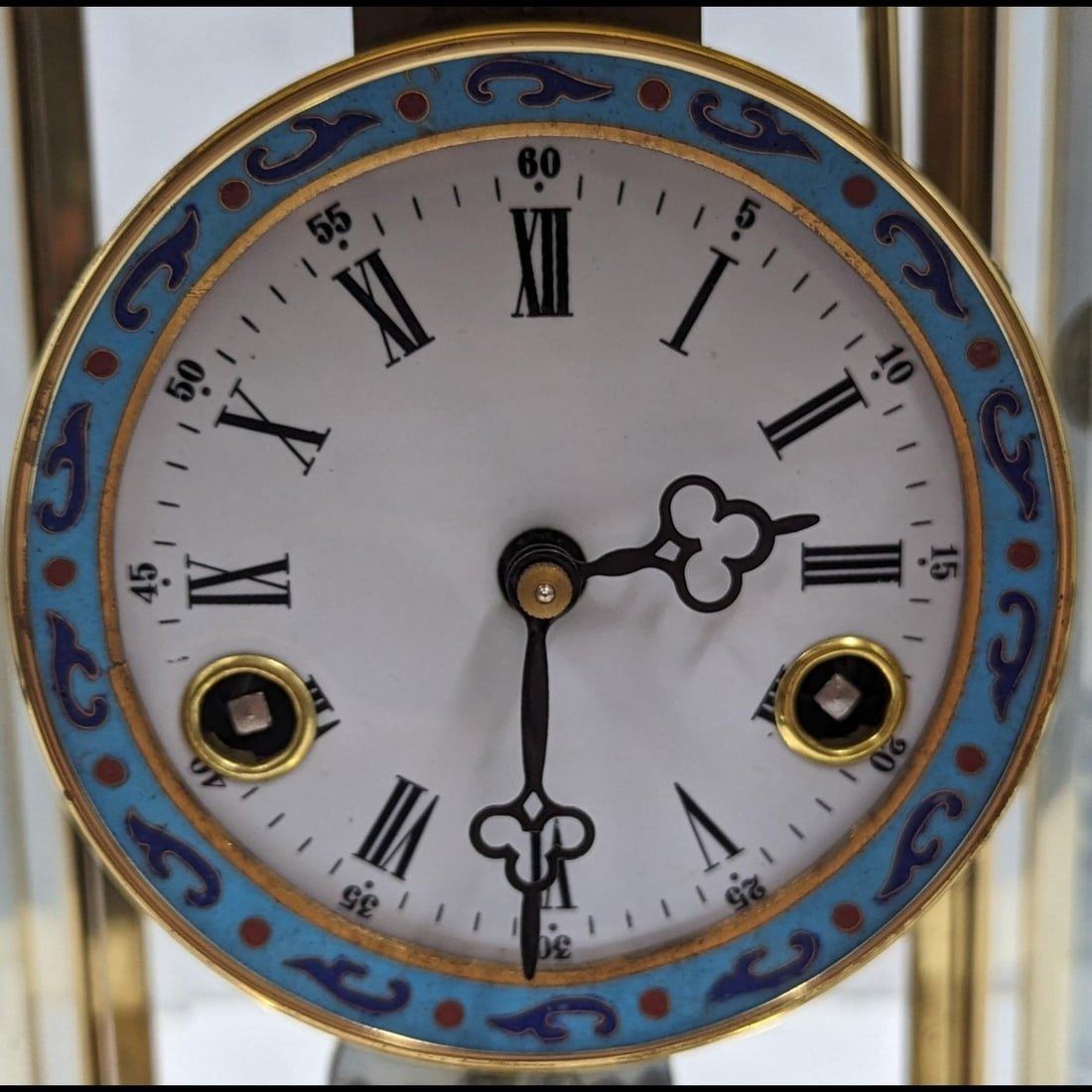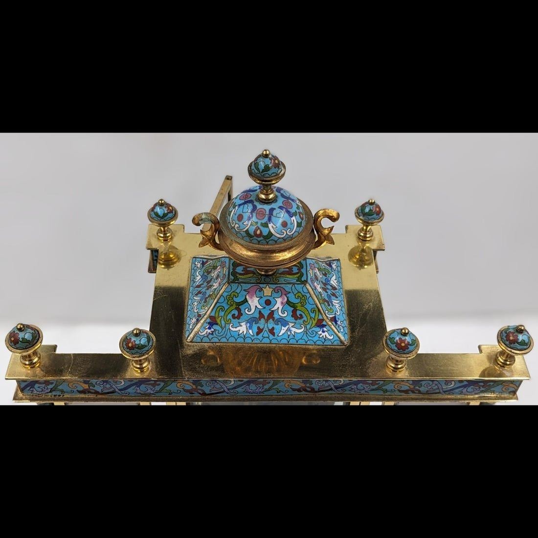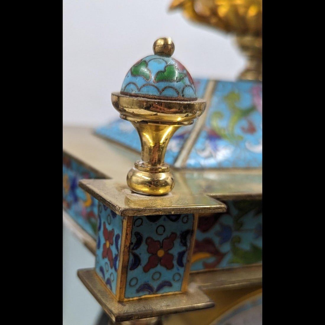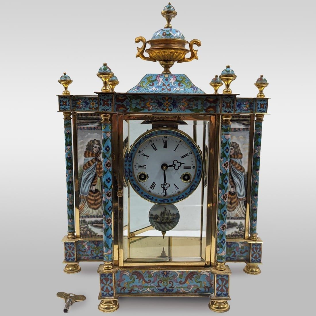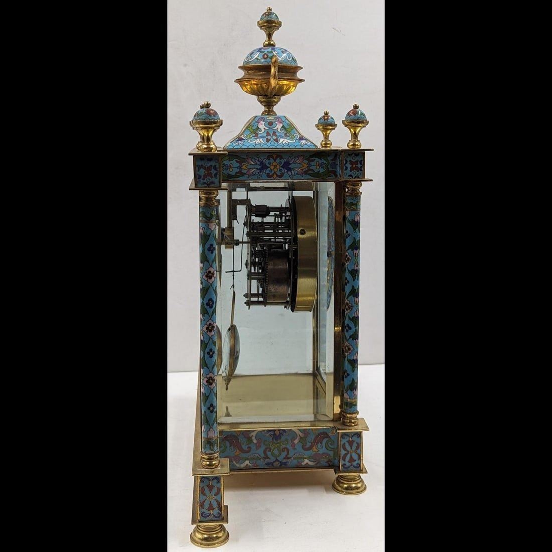 ***RE-LISTED UNDER NEW CONSIGNMENT*** A Fine Antique Cloisonne And Brass Mantle Clock With Painted Porcelain Scenes. Measures approx. 19" X 7" X 14 1/2". Measure 7 1/4" X 2 1/4". Provenance: One Person Private Estate Central Florida.
