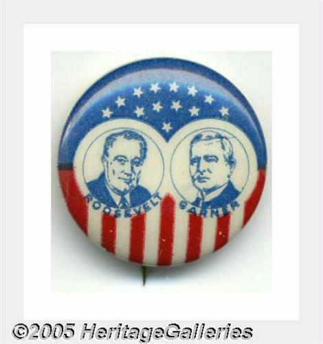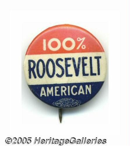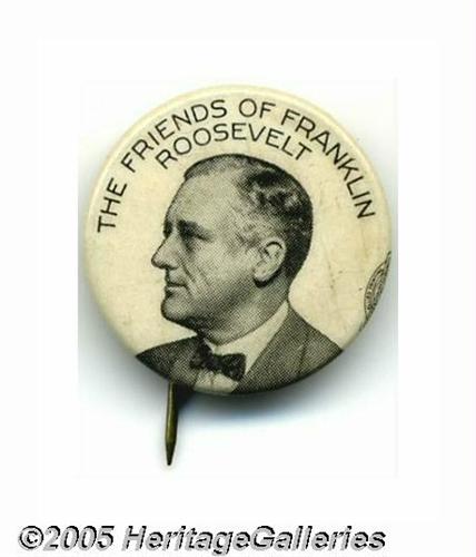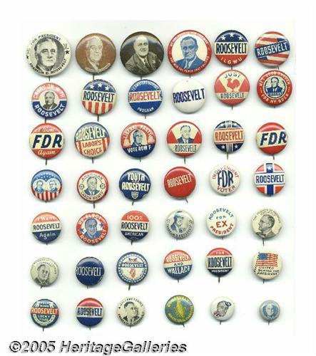 <B>A Fine Collection of 1932-1944 Franklin Roosevelt Buttons</B></I> Forty-two pieces as shown, all in excellent or better condition. Please see our web site for additional images. Total individual fair retail value around $400-$450. Sizes 5/8" - 1 1/4". Lot:263