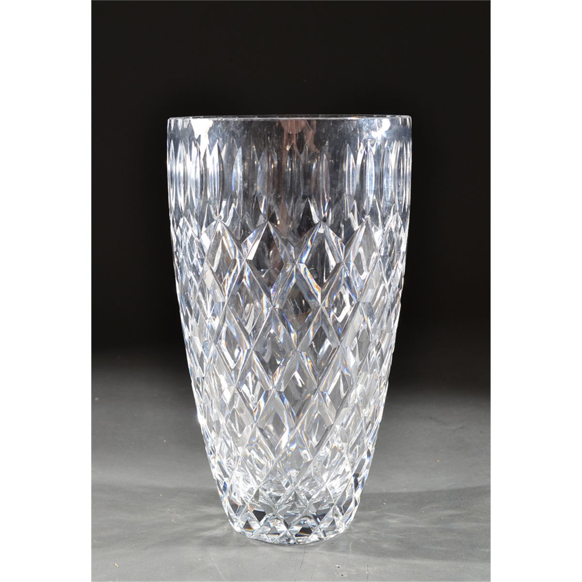 In diamond pattern, signed illegibly on underside. 10" H x 5.5" Dia. Circa 20th century. Private collection St. Clair Shores, MI.