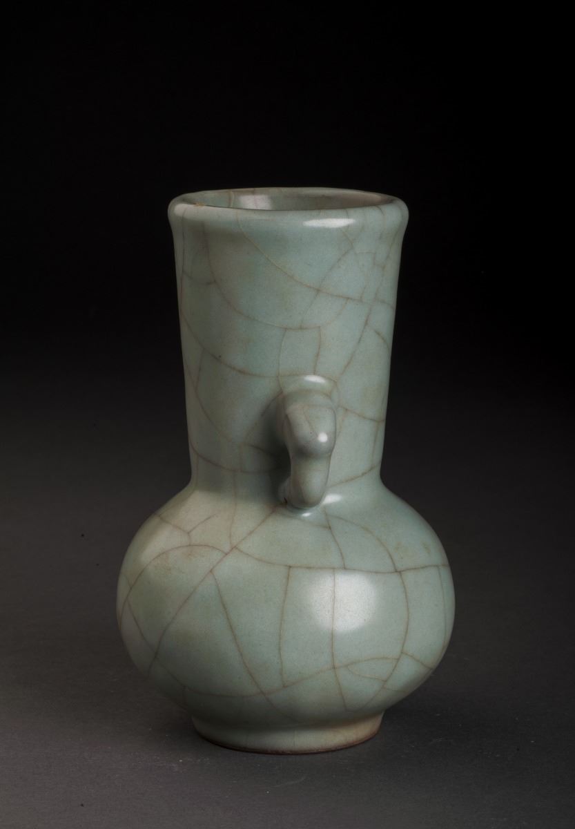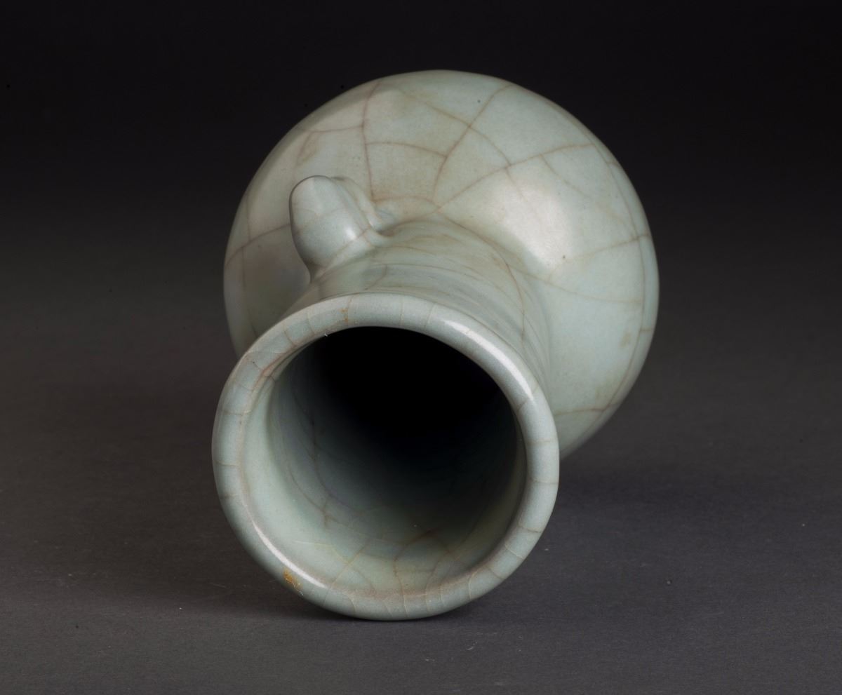 A Fine And Rare Ge Kiln Porcelain Vase In Good Condition, Within The Alternative Light Blue Tone Throughout. Finely Potted Round Body Raised To The Broad Long Neck. With Two Delicate Designed Handles On Both Sides.