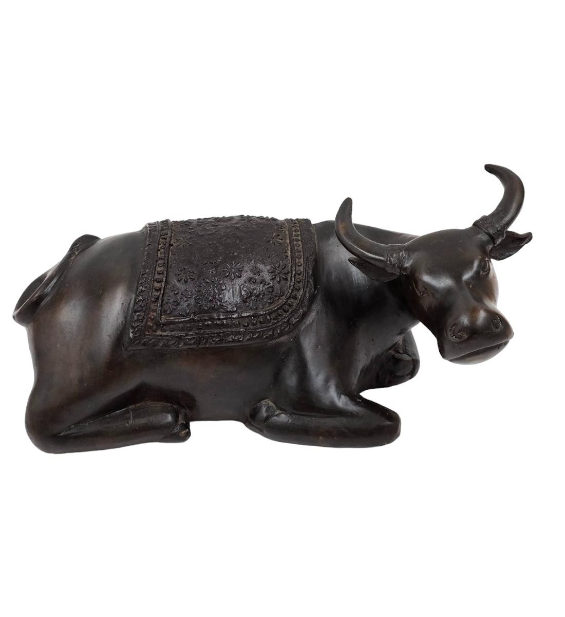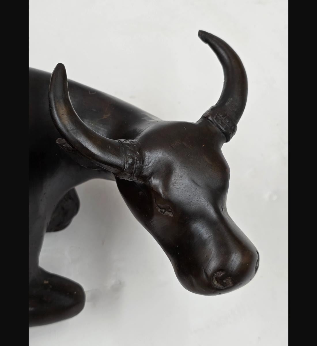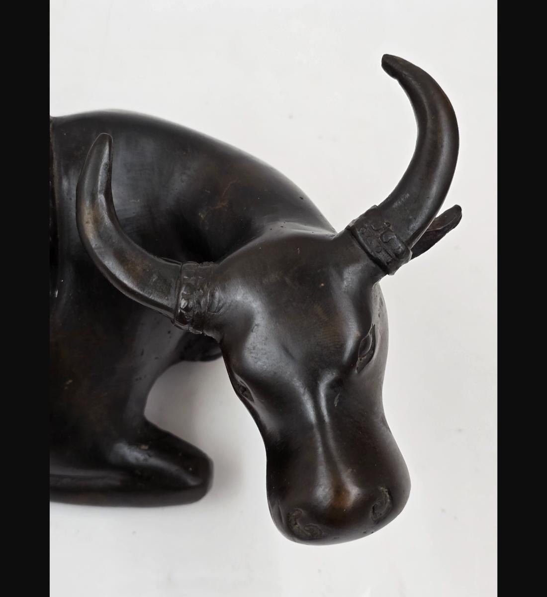 A Fine Vintage Bronze Cow In A Seated Position. Measures approx. 10" X 4 3/4". Provenance: One Person Private Estate Central Florida.