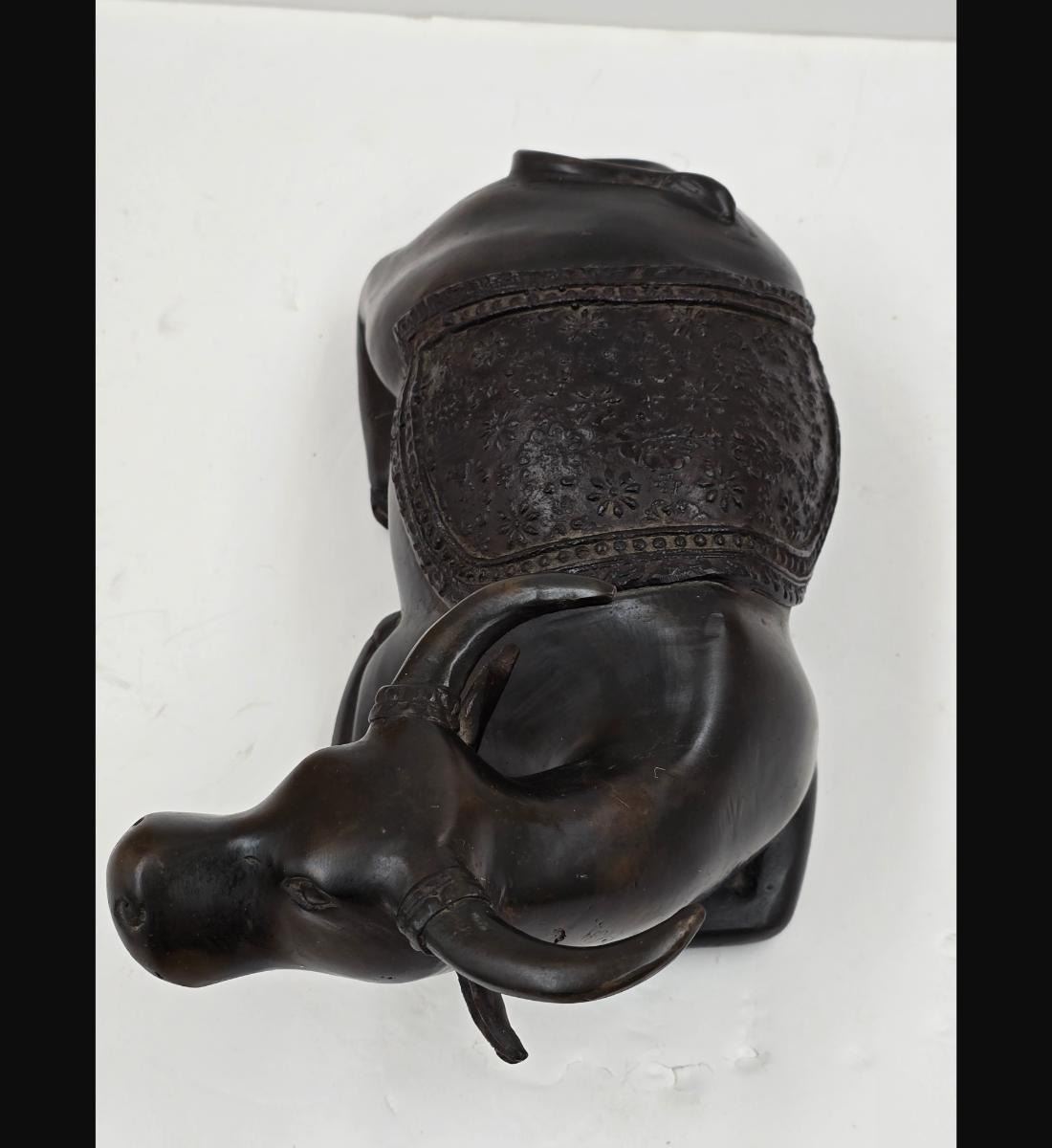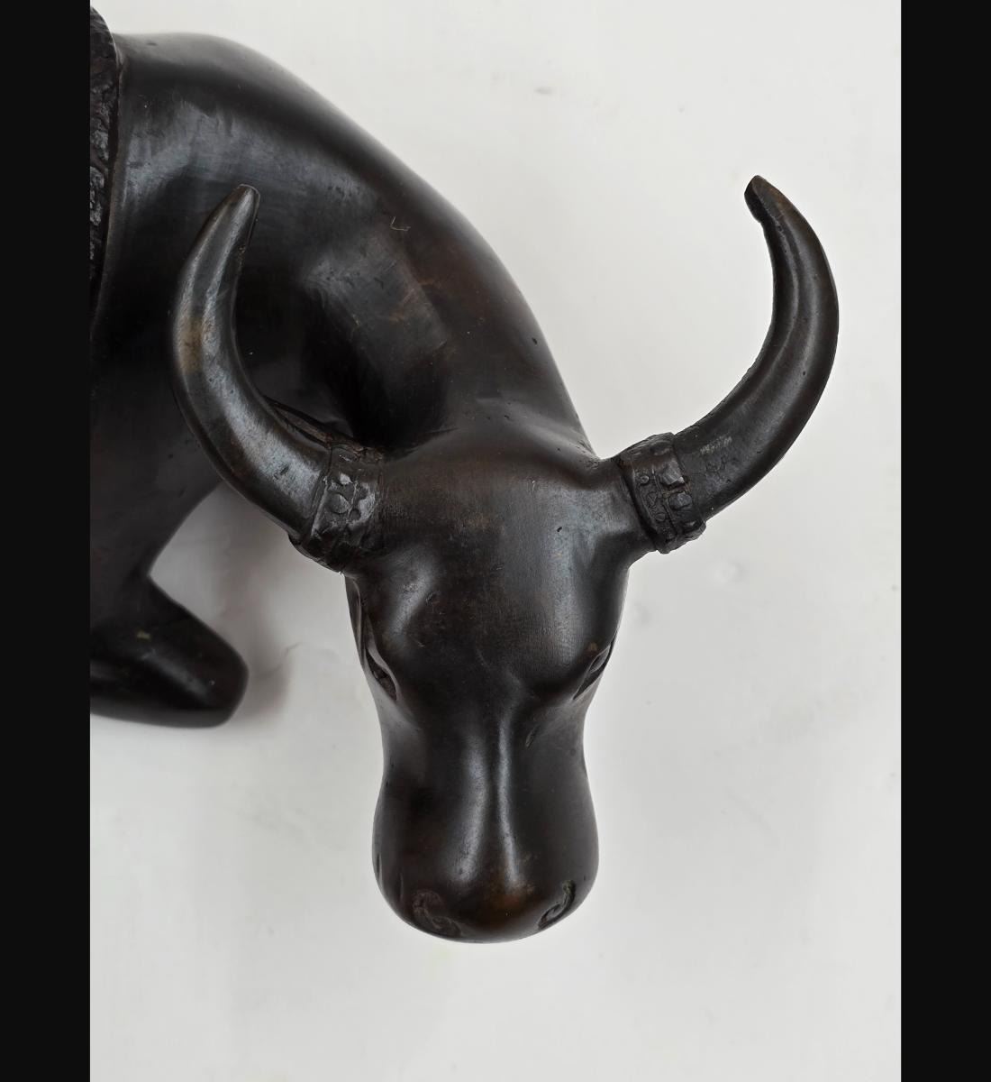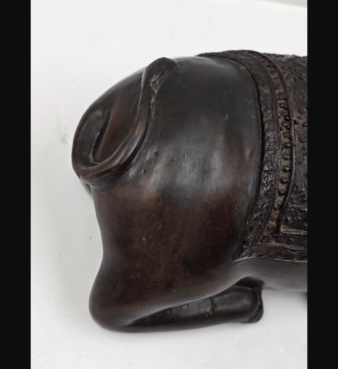A Fine Vintage Bronze Cow In A Seated Position. Measures approx. 10" X 4 3/4". Provenance: One Person Private Estate Central Florida.