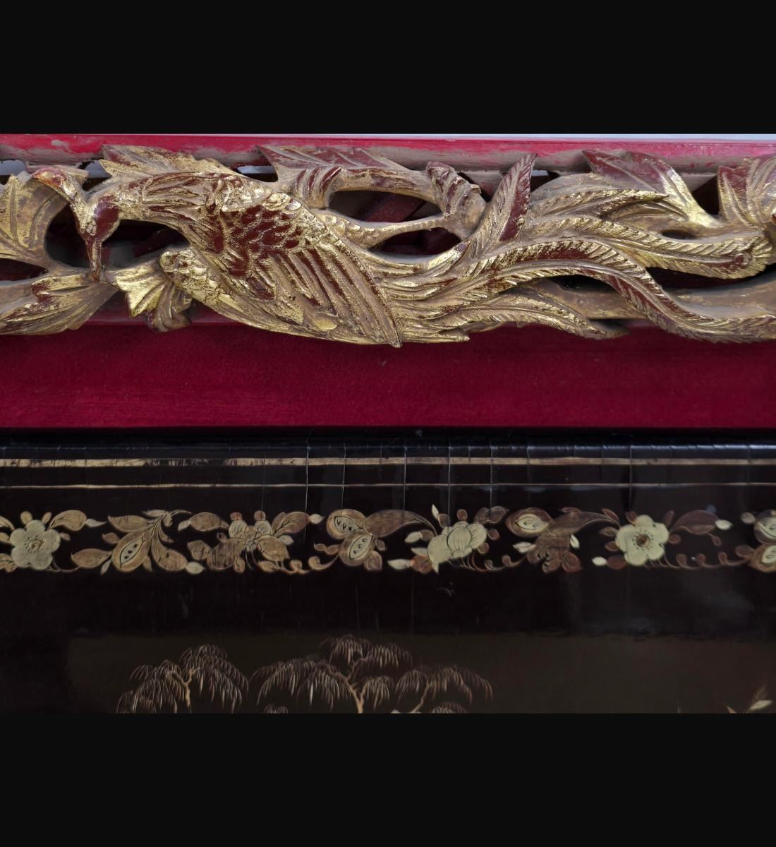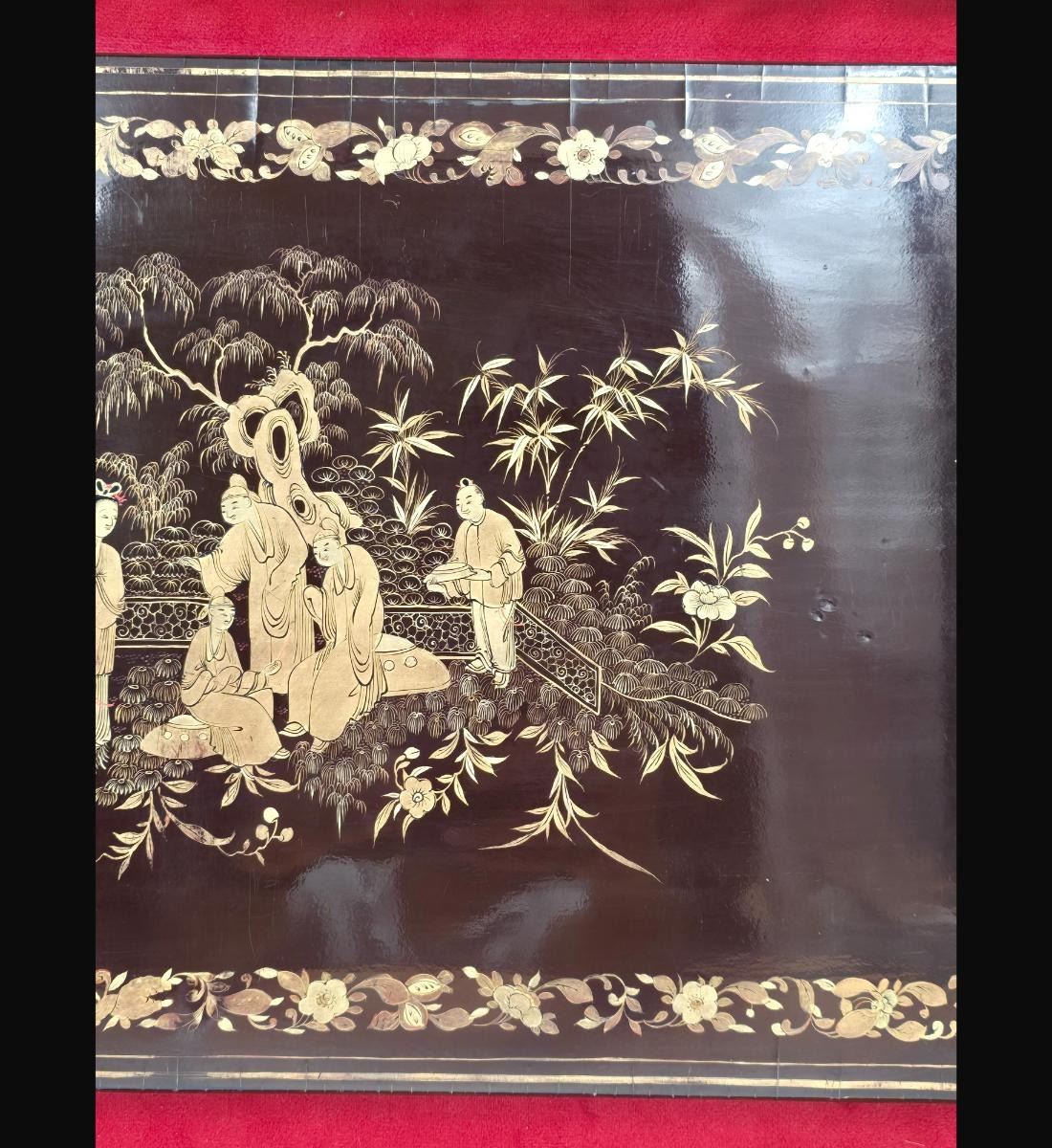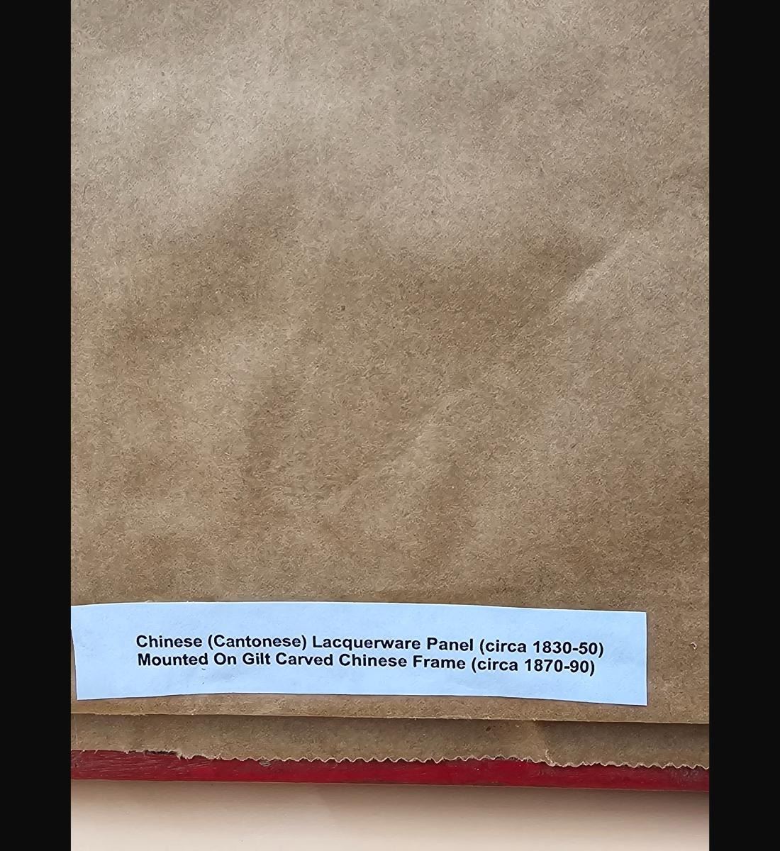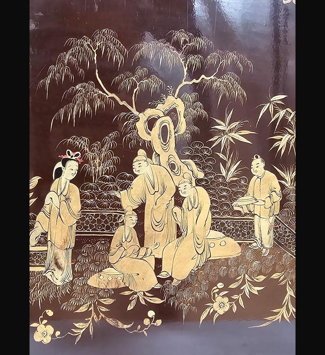 A Finely Gilt Painted Lacquered Chinese Panel With Carved Gilt Frame 19th Century
