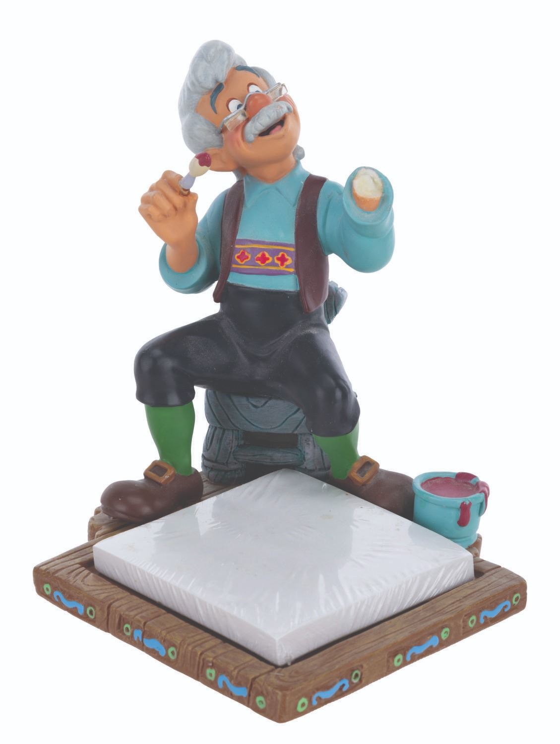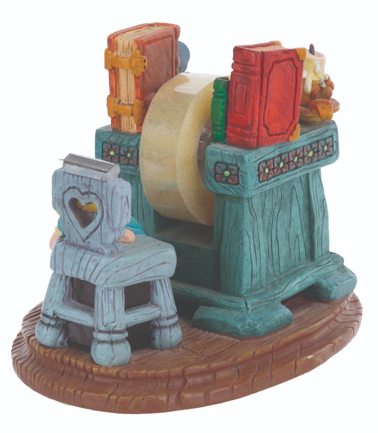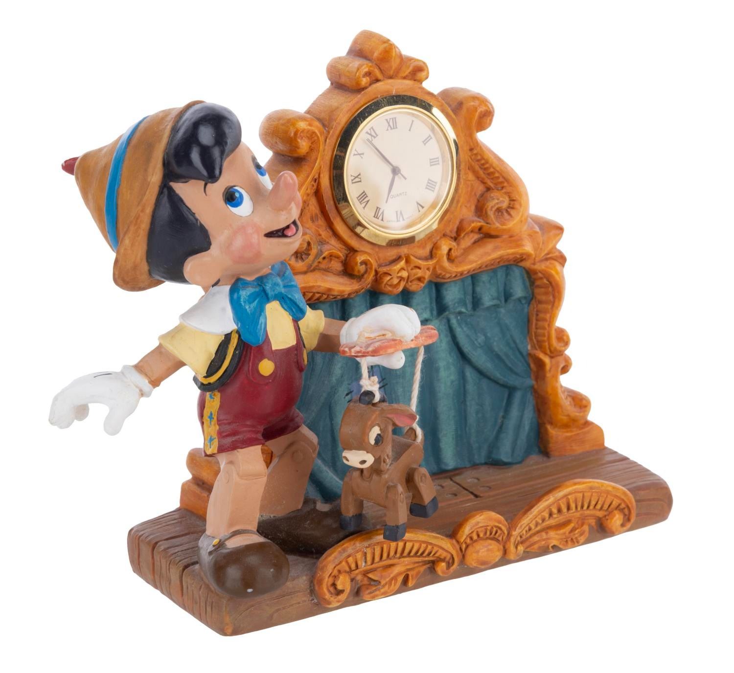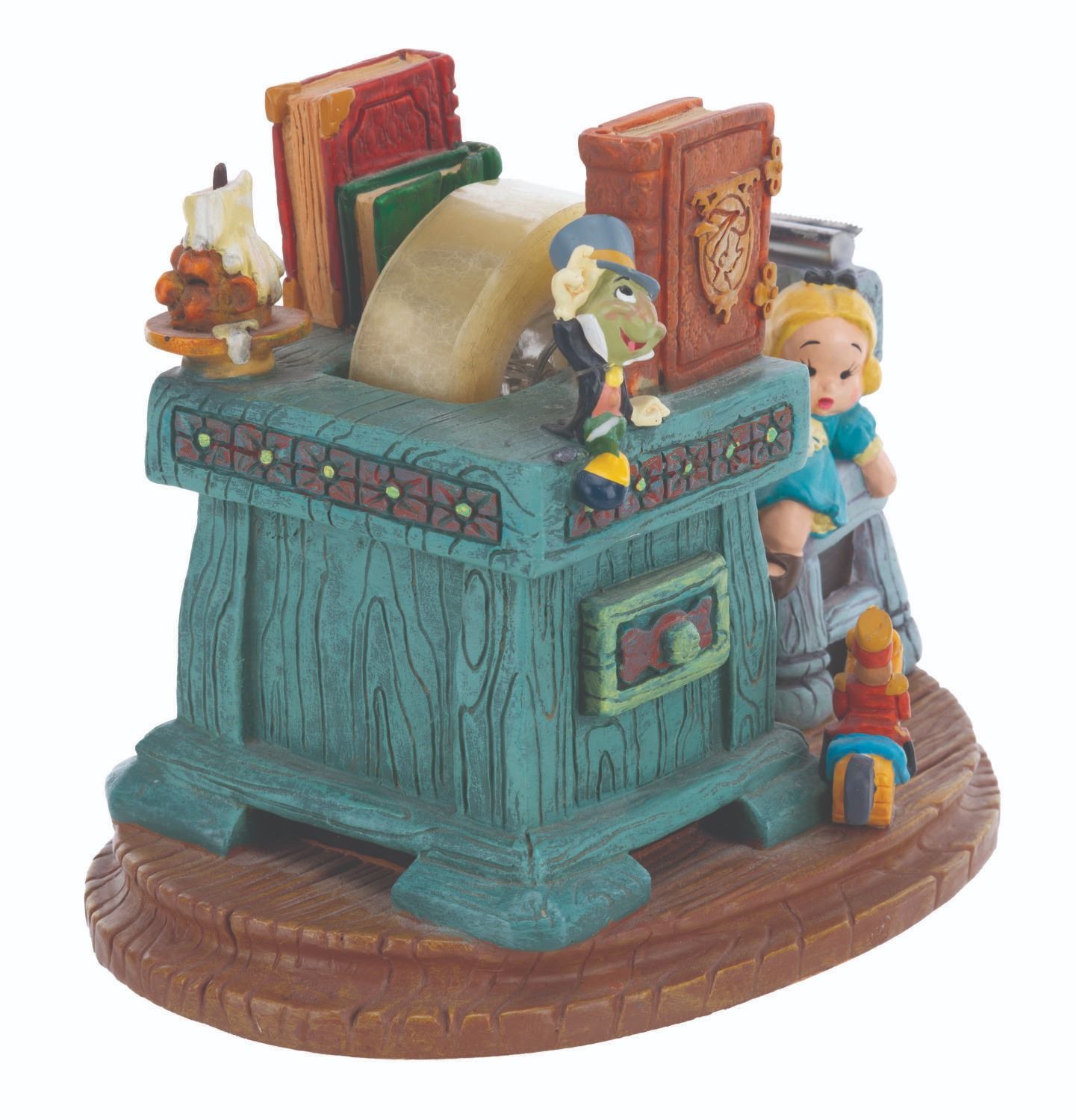 (Disney, 1990s-2000s) A five piece “Pinocchio” desk set produced by the Disney Catalog. The delightful figural set includes a Pinocchio business card holder with clock, Cleo paperclip holder, Figaro stapler, Jiminy Cricket tape dispenser, and Geppetto Post-It Note stand. Measuring 5.75” tall and under, the set is overall in very good condition, with a scuff to Figaro’s nose, and the Geppetto piece in poor condition due to a broken hand.
