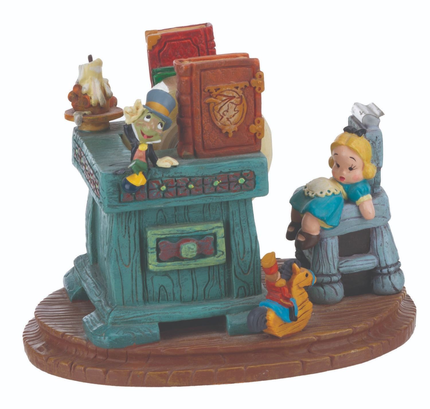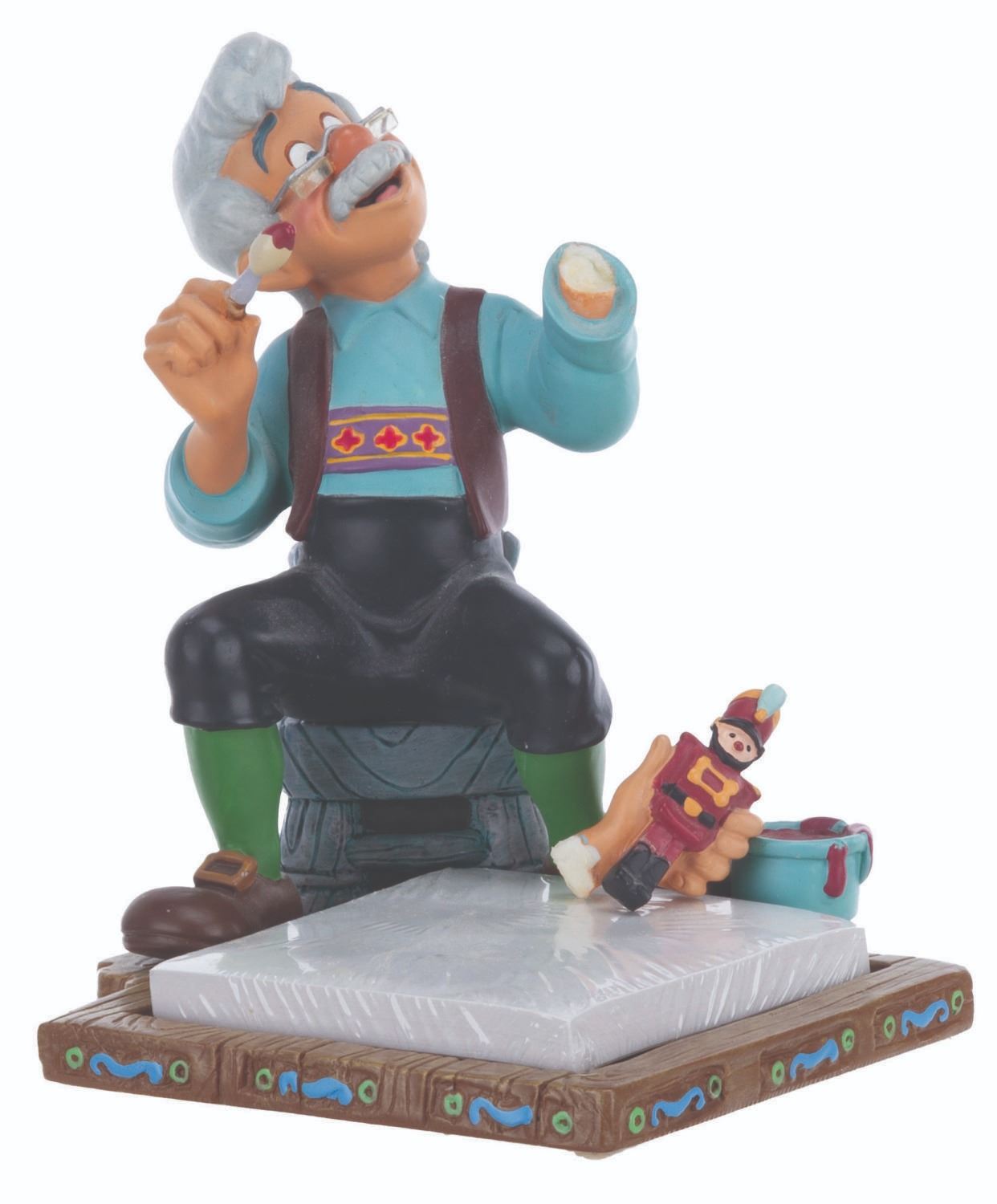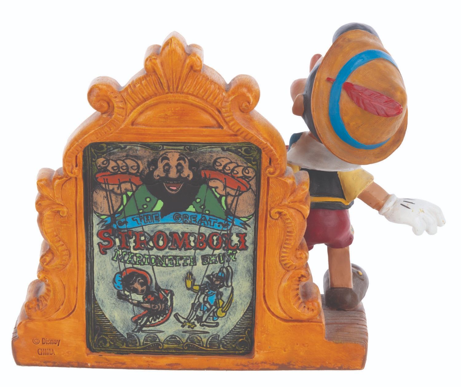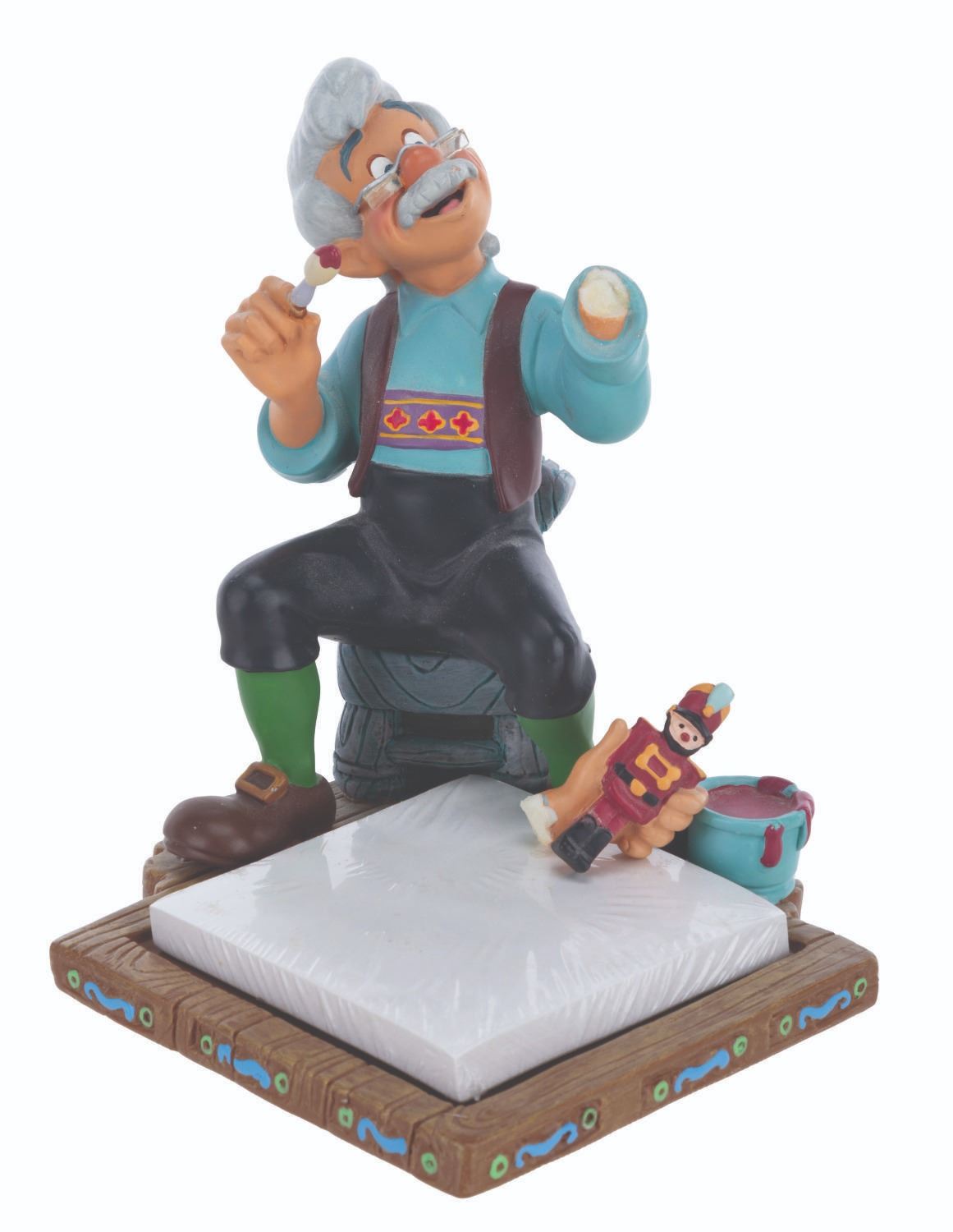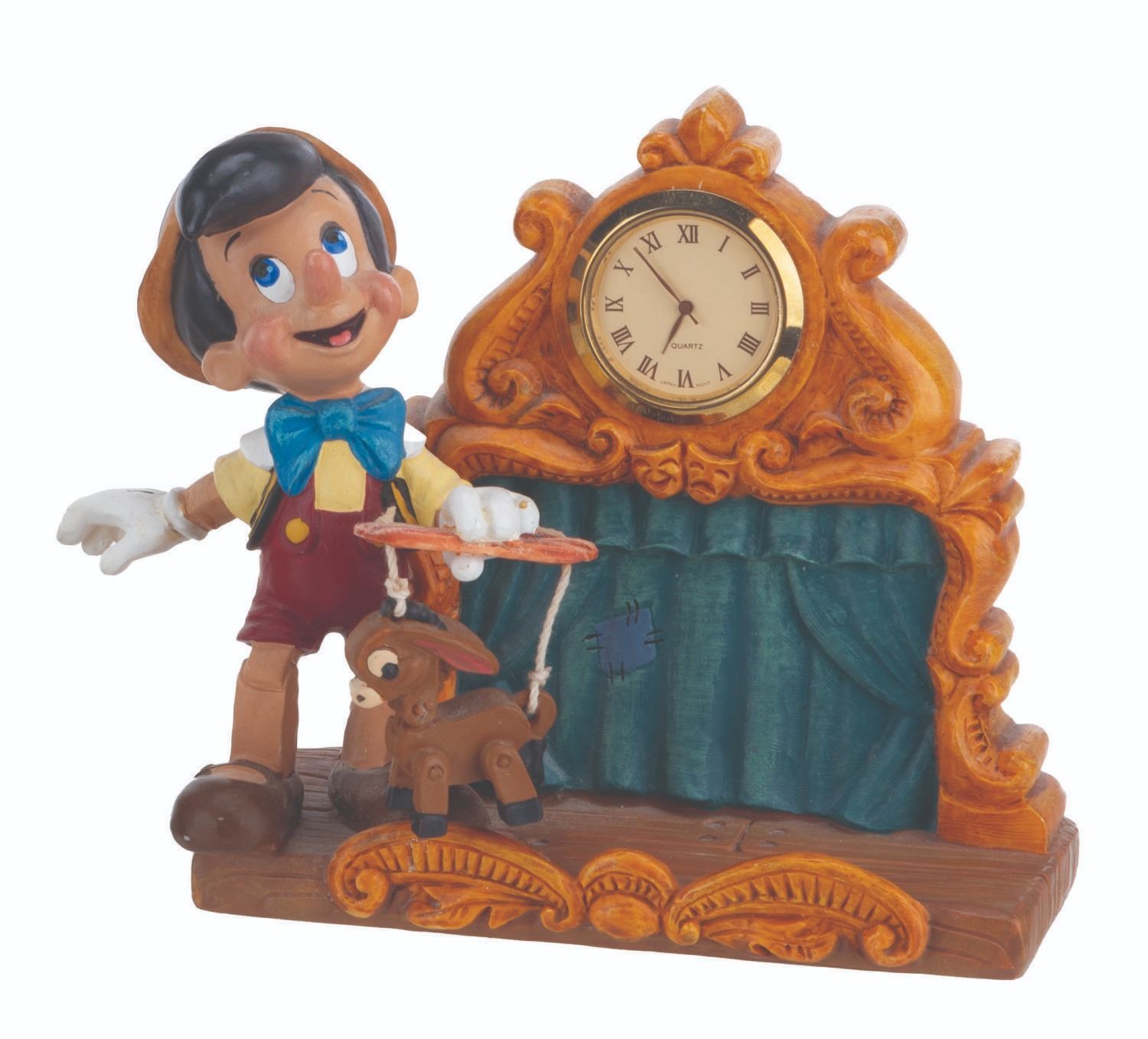 (Disney, 1990s-2000s) A five piece “Pinocchio” desk set produced by the Disney Catalog. The delightful figural set includes a Pinocchio business card holder with clock, Cleo paperclip holder, Figaro stapler, Jiminy Cricket tape dispenser, and Geppetto Post-It Note stand. Measuring 5.75” tall and under, the set is overall in very good condition, with a scuff to Figaro’s nose, and the Geppetto piece in poor condition due to a broken hand.