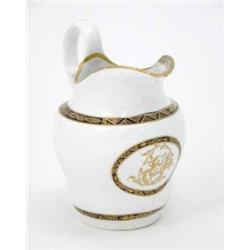 A Flight Worcester milk jug, with blue borders hatched in gilt, initials EP within, rare Flight s...