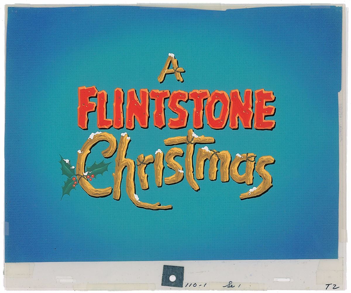 (Hanna-Barbera Studios, 1977) Original production title cel from A Flintstone Christmas. The cel is taped to a non-matching blue background. Image measures 7.75 x 5.75, with overall dimensions of 12.5 x 10.5. In fine condition.