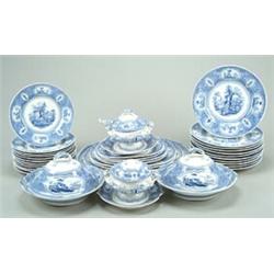A "Florentine China" part dinner service, printed in blue with a series of romantic scenes, compr...