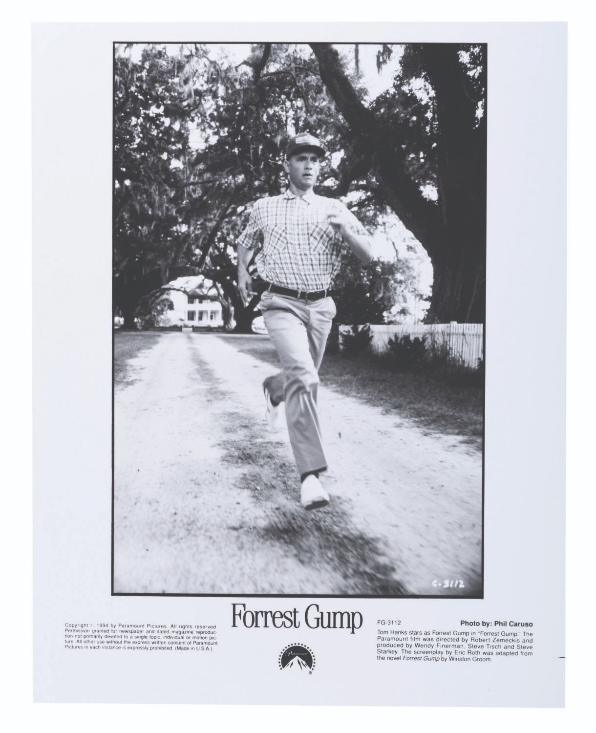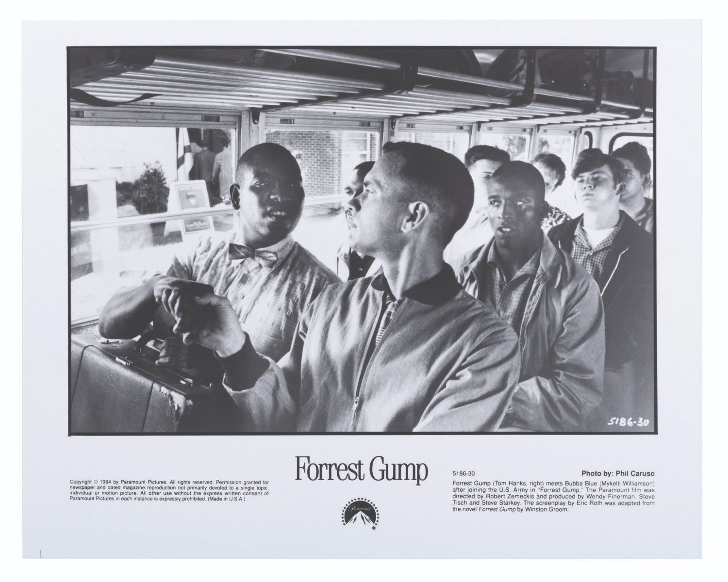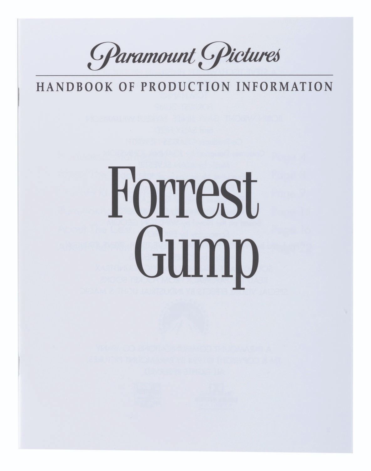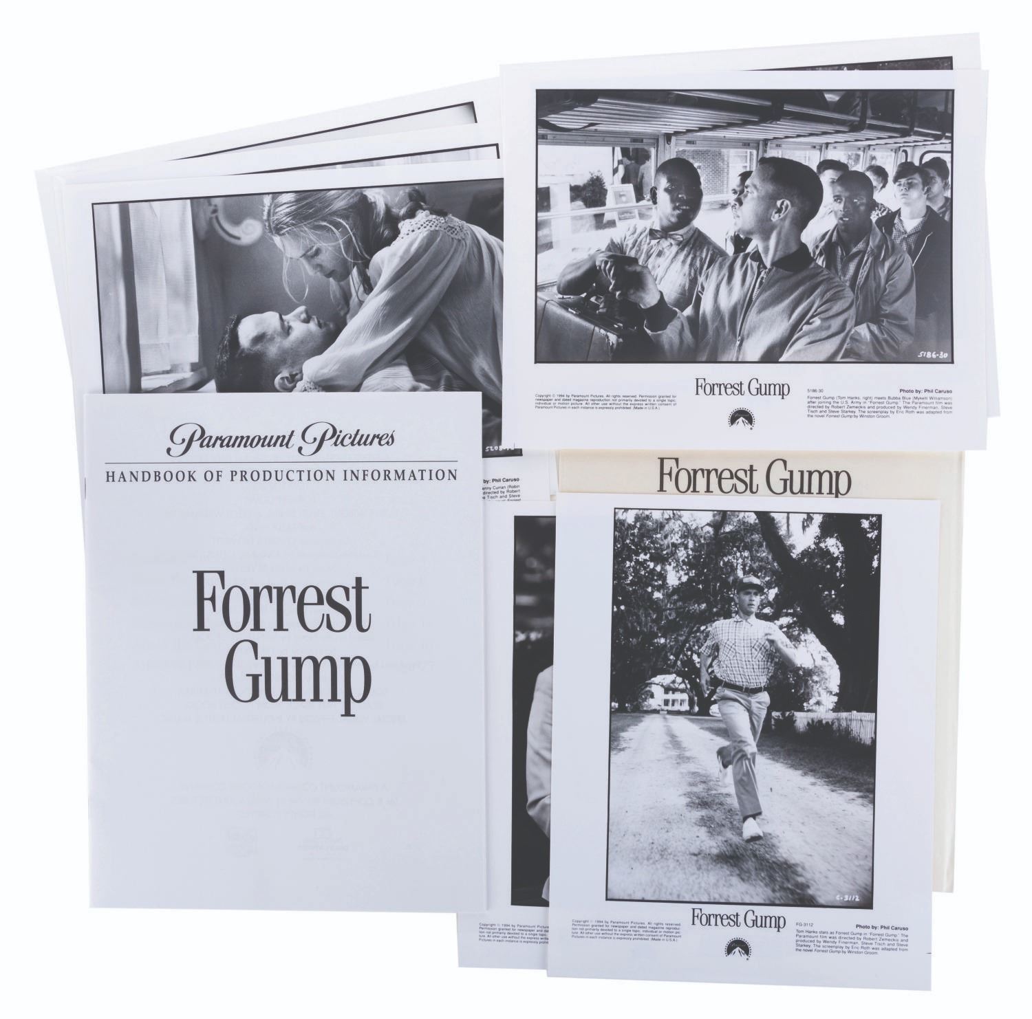 (Paramount, 1994) A press kit for "Forrest Gump" featuring seven 8" x 10" publicity photos, and a 28-page handbook of production information. Measuring 9" x 12", the folder is in very good condition with typical light handling wear, and the photos and handbook are in fine condition.