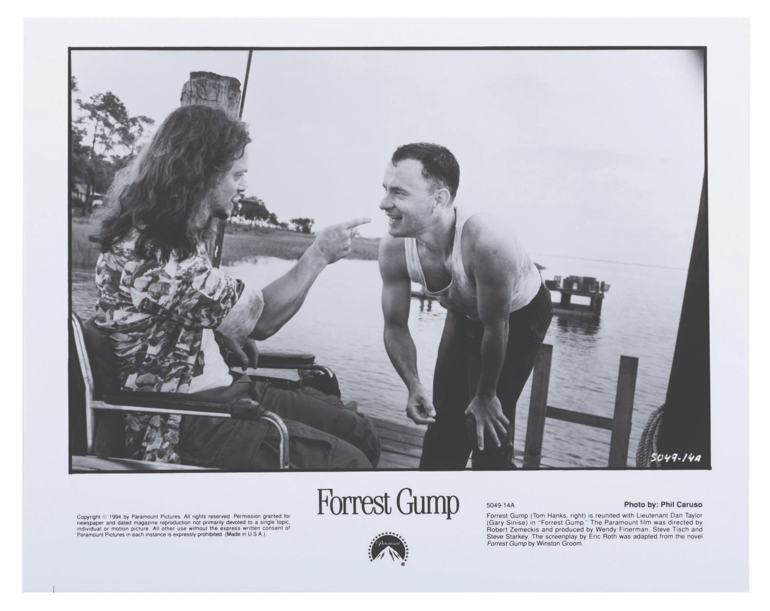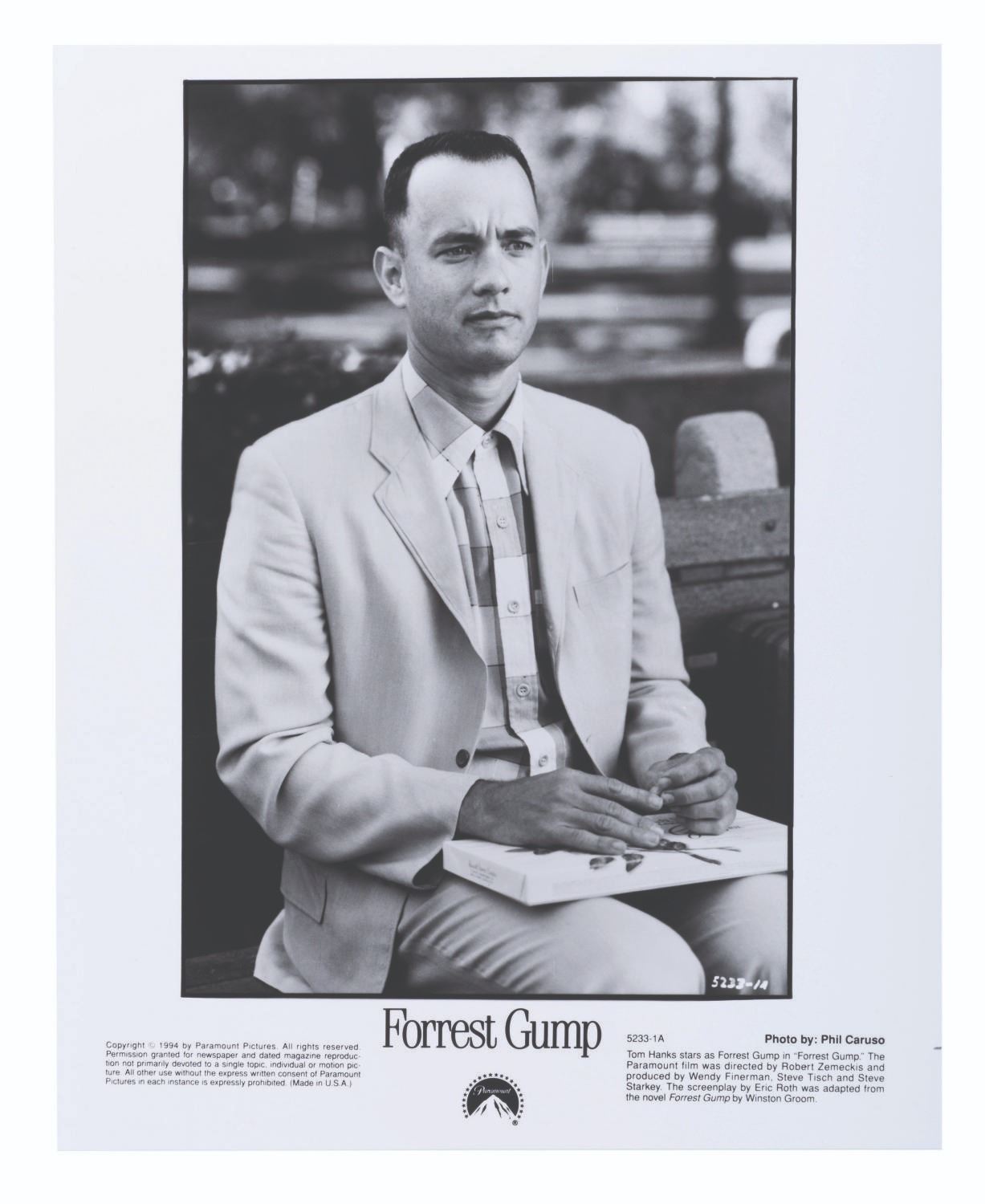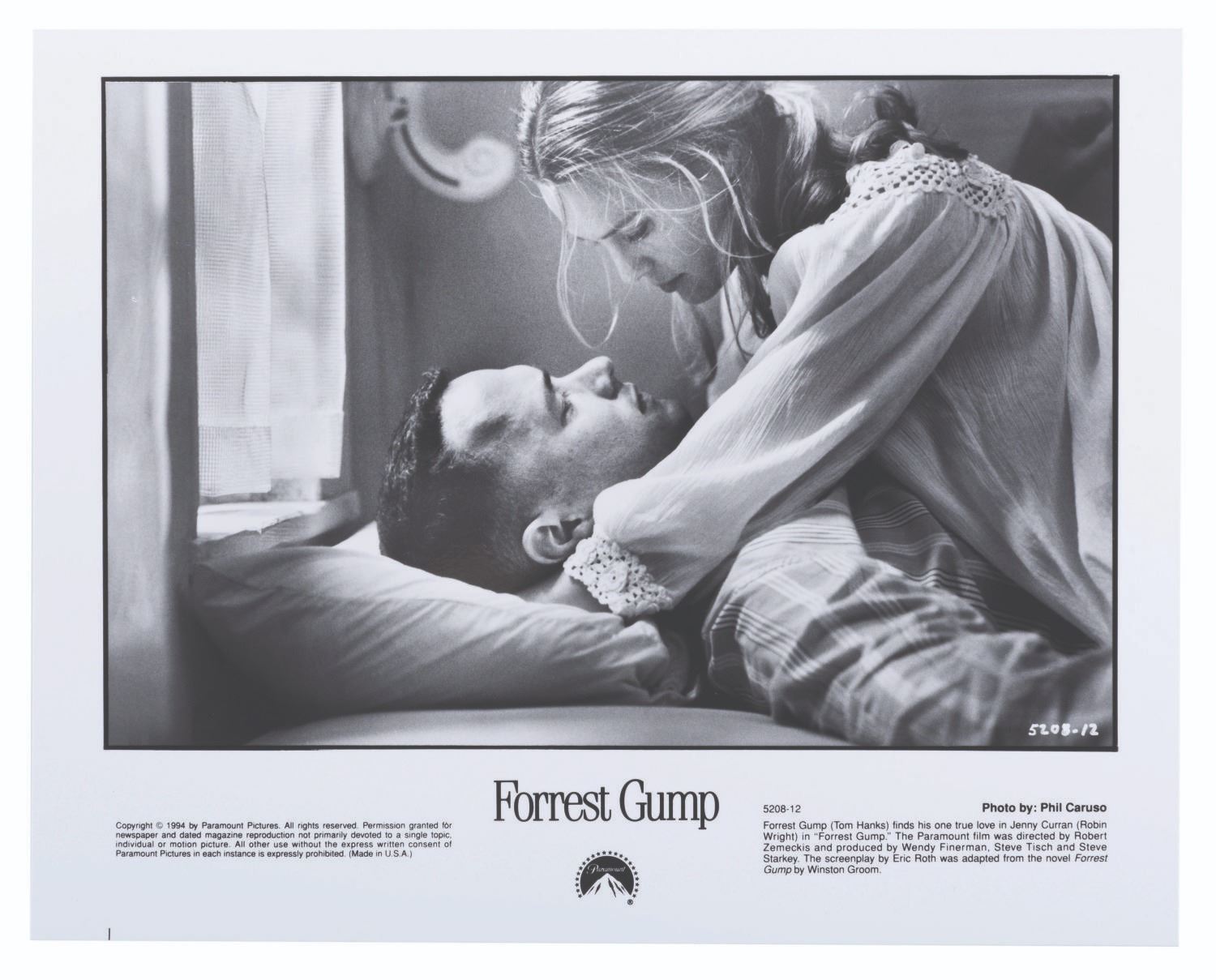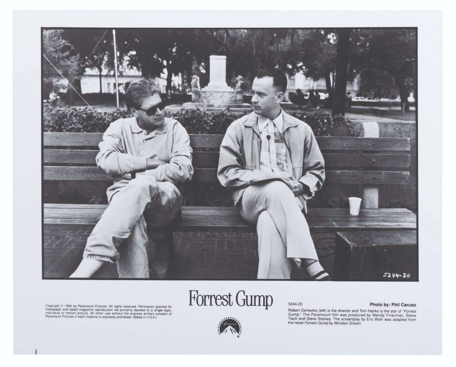(Paramount, 1994) A press kit for "Forrest Gump" featuring seven 8" x 10" publicity photos, and a 28-page handbook of production information. Measuring 9" x 12", the folder is in very good condition with typical light handling wear, and the photos and handbook are in fine condition.