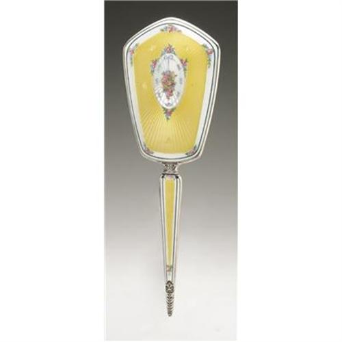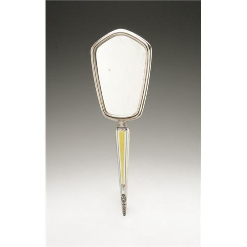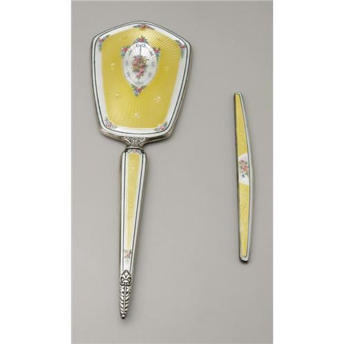 <B>An American Silver Hand Mirror And Comb</B></I><BR><B>Foster & Bailey, Newark, NJ, 1925</B></I><BR><BR>Hallmark to the front with <I>STERLING/PAT. JUN-30-'25</B></I><BR>The mirror: 14in. long x 4.6in. wide2 Items <BR><BR><B>Condition Report:</B> Normal signs of wear as appropriate with age; the comb back is missing the comb.