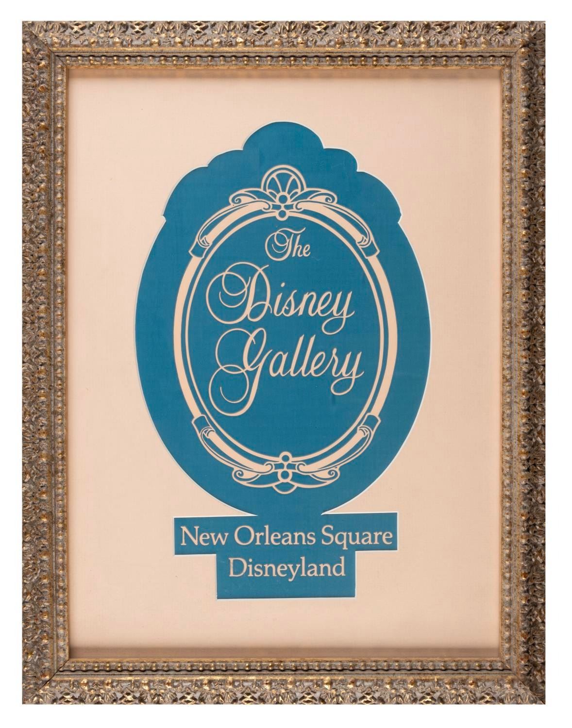 (Disneyland, 1980s-90s) An early shopping bag from The Disney Gallery at Disneyland, trimmed, mounted, matted, and framed to display the logo. Measuring 13.5" x 17.5", the framed piece displays in very good condition with slight wear to the original bag including small creases, and light wear from display.