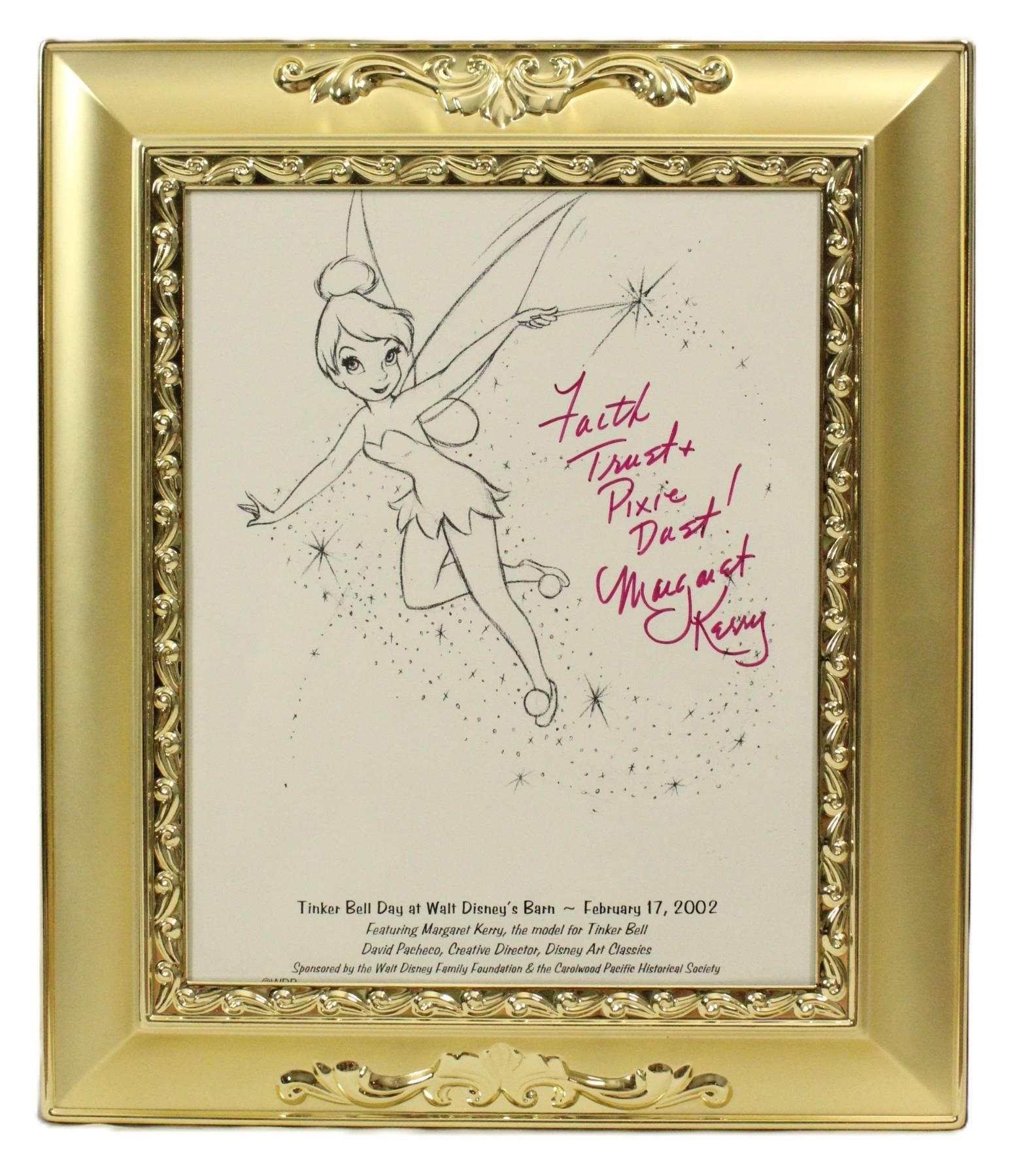 This beautifully framed image of tinkerbell was made for the Tinker Bell Day at Walt Disney's Barn on February 17th, 2002. It was signed and autographed with the note "Faith, Trust, and Pixie Dust!" by Margaret Kerry, the model for Tinker Bell. No COA available.
