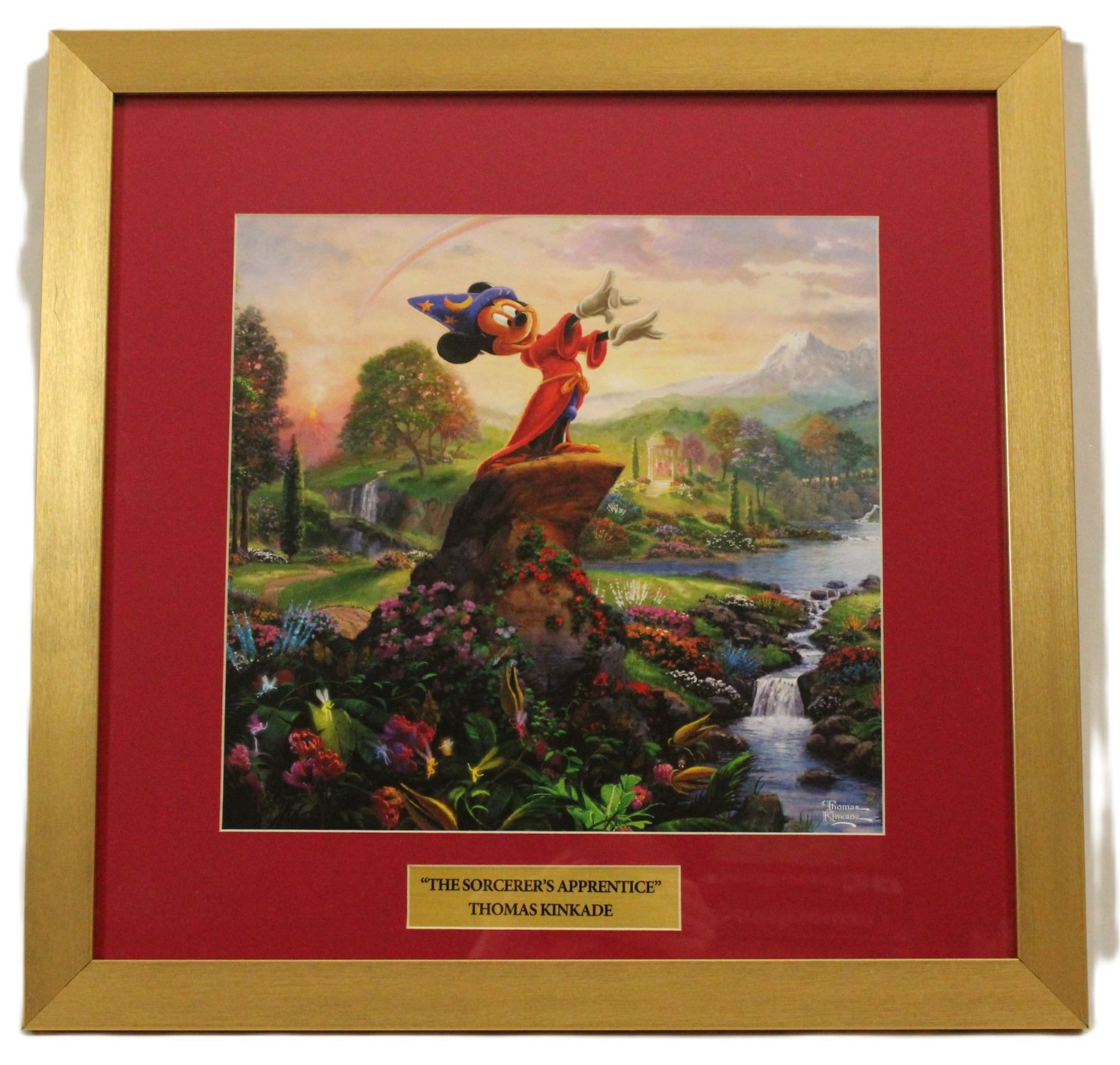 Fantasia was a revolutionary film leaving an emotional, intellectual and spiritual impact on its viewer. It is from this lofty platform of visionary brilliance and excellence in artistic execution that the Thomas Kinkade Studios began its rendering of Fantasia. Joining the flowers and fairies are many delightful characters from various segments of this Disney classic. Mickey stands in the center of it all orchestrating the sublime dance going on about him