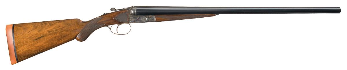 Single brass bead sight, with modified chokes, 2 3/4 inch chambers, "A. FRANCOTTE MAKER & PATENTEE" on the right barrel and "ABERCROMBIE & FITCH/ MADE IN BELGIUM" on the left. Scroll engraved frame, latch and trigger guard, with "A. FRANCOTTE MAKER & PATENTEE/ LIEGE - BELGIUM" on the left lock plate. Checkered knob grip stock, with engraved forearm hardware, diamond pattern checkering, silver initial oval on the underside of the comb and a solid rubber recoil pad. 14 1/2" pull, 1 1/2" drop at comb and 2 1/4" drop at the heel.