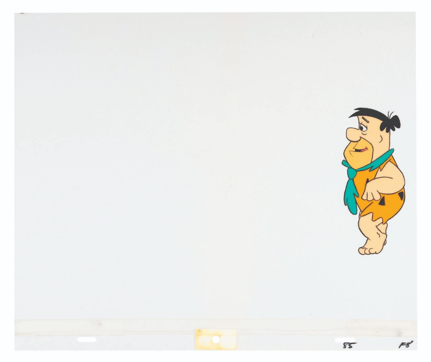 (Hanna-Barbera, 1960s-70s) An original hand-painted production cel of Fred Flintstone from “The Flintstones.” With a character image of 4.5” x 2.25” on an untrimmed 10.5” x12.5” cel, the piece is in very good condition with light wear from handling.