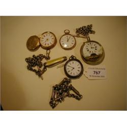 A French 14ct Gold Open Face Pocket Watch, with enamel dial and Roman numerals, and three other pock