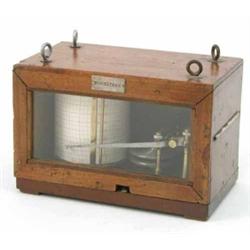 A French 19th century ballooning barograph, with clockwork mechanism in a fitted glazed mahogany case and applied metal badge engraved 1500 metres, 7.5ins £500-600