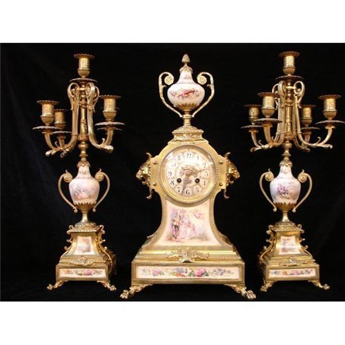 A French 3rd Republic gilt and porcelain garniture(period 1880).