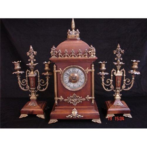 A French 3rd Republic oak and bronze garniture (period 1880).