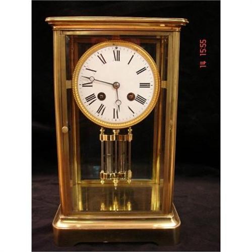 A French 4-glass(bevelled) brass mantel clock
