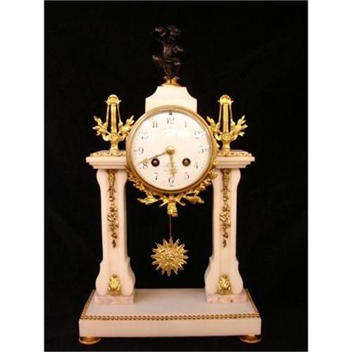 A French Empire "style" gilt-bronze mounted white marble mantel clock (period 1880) 3rd Republic.