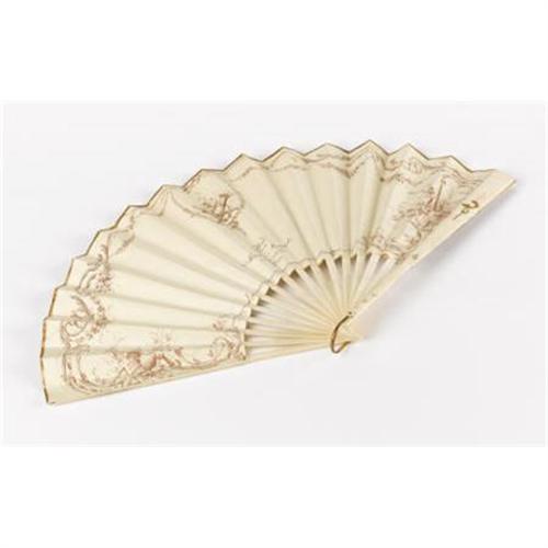 <B>A French Ivory and Paper Fan<BR></B></I>Maque Gravt, Paris<BR>Twentieth Century<BR>Signed <I>Maque Gravt<BR></B></I>8.5 inches high x 15.5 inches wide<BR><BR>The fan painted on one side with a group of women in a garden and inscribed on the reverse <I>Offert parla Maison Maquet/10 Rue de la Paix, Paris</B></I><BR><BR><BR><b>Shipping:</b> Requires 3rd Party Shipping (<a target="_blank" href="http://www.heritageauctions.com/common/shipping.php">view shipping information</a>)