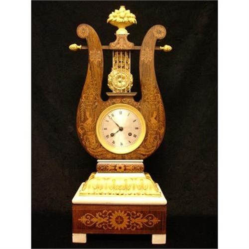 A French Napoleon III Pallisander wood and gilt-bronze mounted Lyre Clock from (period 1860).
