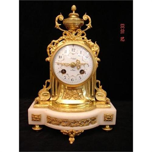 A French white marble gilt-bronze mounted mantel clock (period 1900)