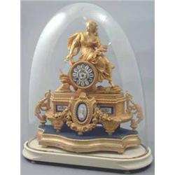 A French gilt metal mantel clock, inset with Sevres style porcelain plaques and surmounted with a figure of Ceres, 15ins £400-600