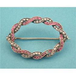 A French gold open oval brooch designed as 2 entwined rows of rubies and diamonds (see illustration) £250-300