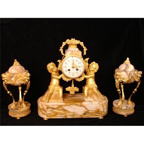 A French 3rd Republic marble and gilt - bronze mounted garniture from period (c1880).