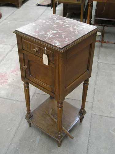 A French oak bedside table with marble top, H 90cms W 38cms, and a mahogany occasional table, W 69cms D 52.5cms £80-120