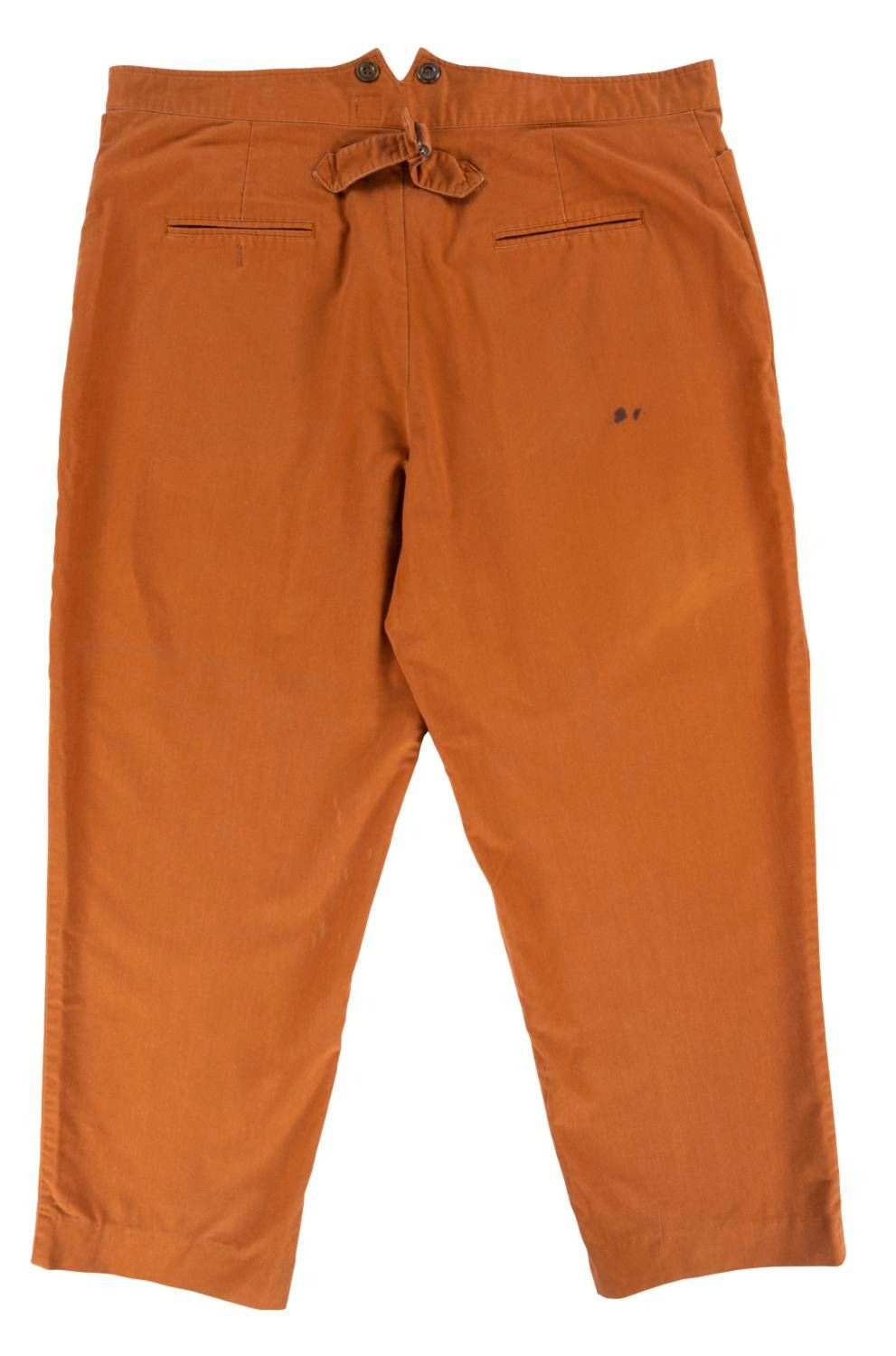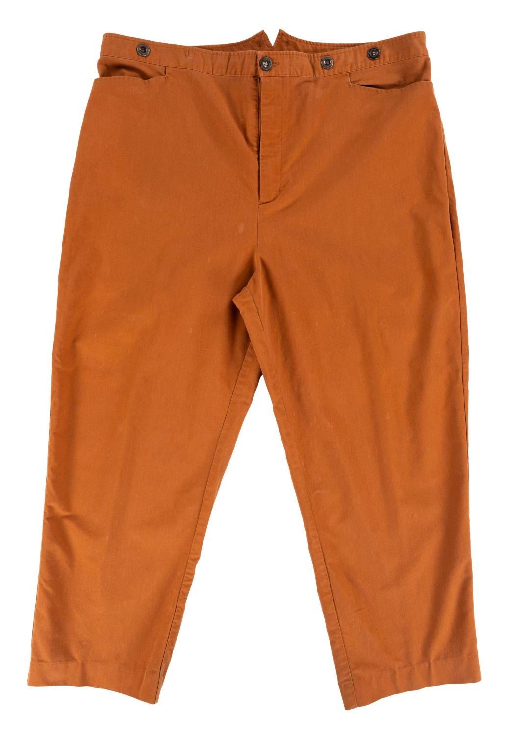 (Walt Disney World, 1990s-2000s) A pair of Frontierland Cast Member uniform pants. Labeled a size 42x28, the pants are in fair condition with color fading, stains, and wear from Park use.
