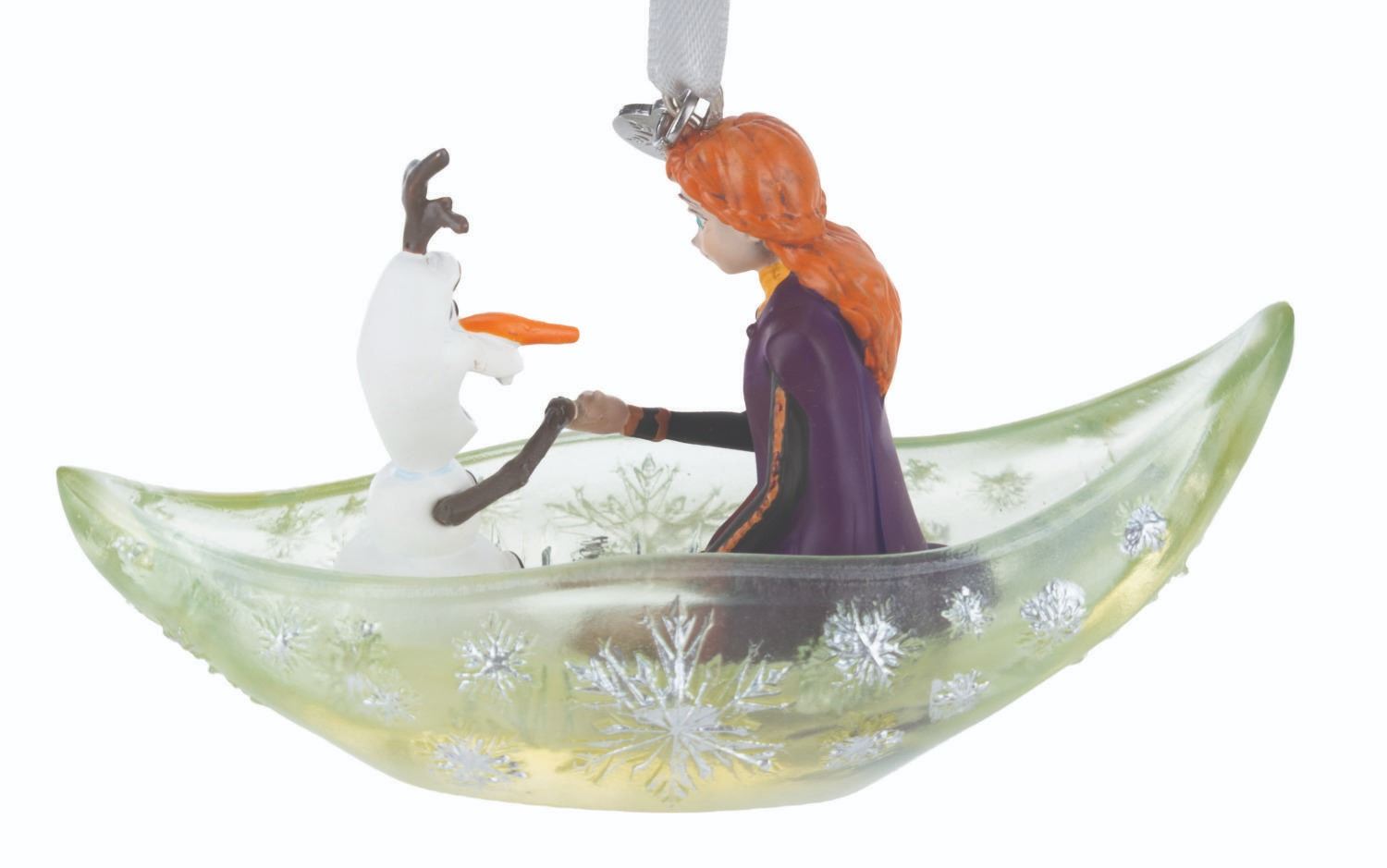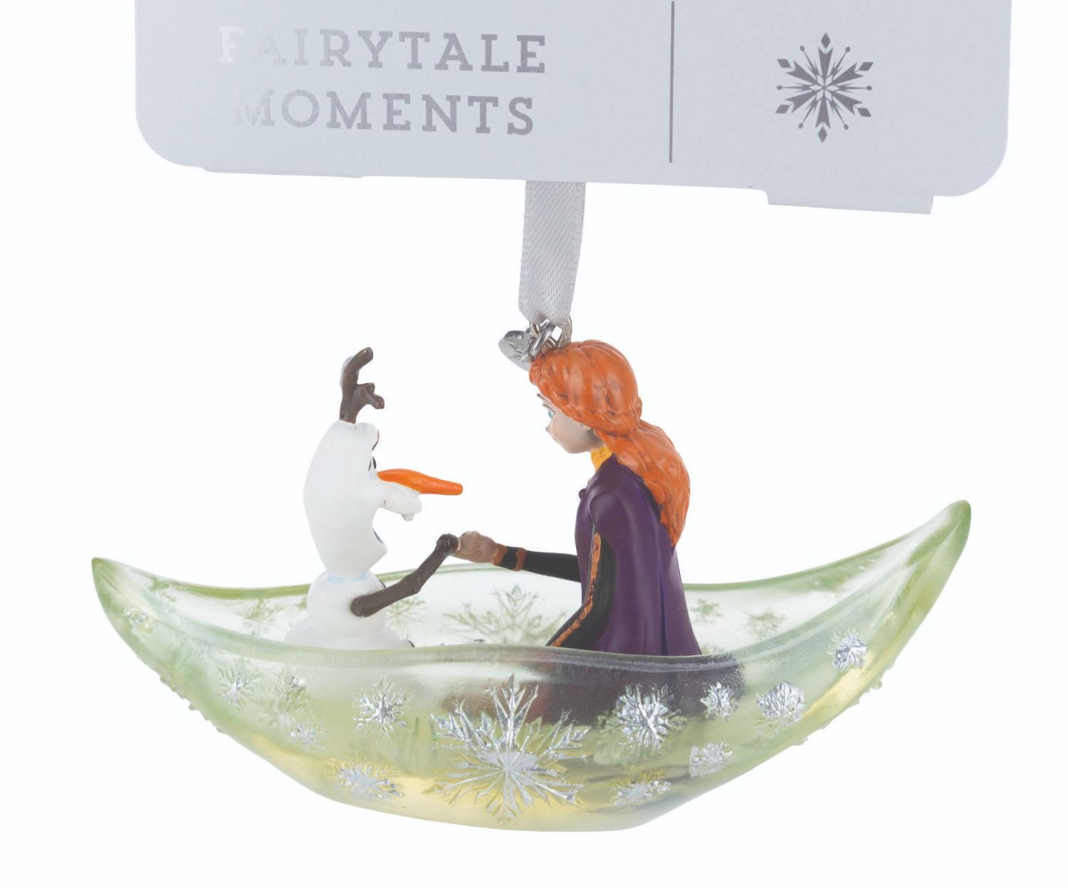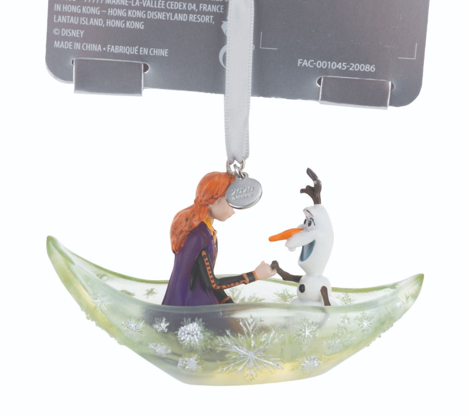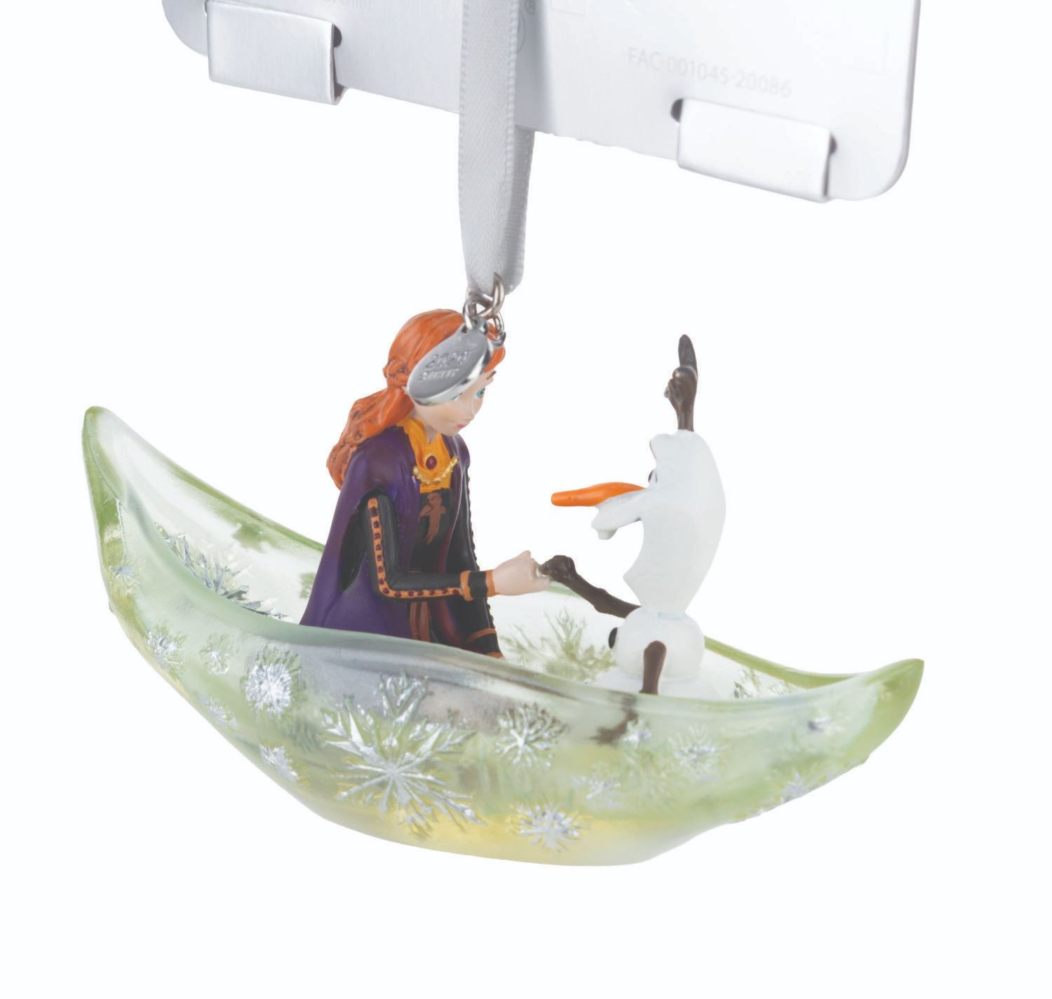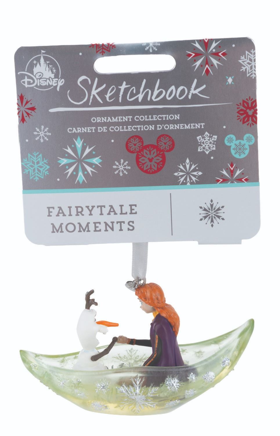 (Disney, 2020) A Sketchbook Fairytale Moments ornament of Anna and Olaf from "Frozen" in an ice boat. The ornament is in fine condition with the original box.