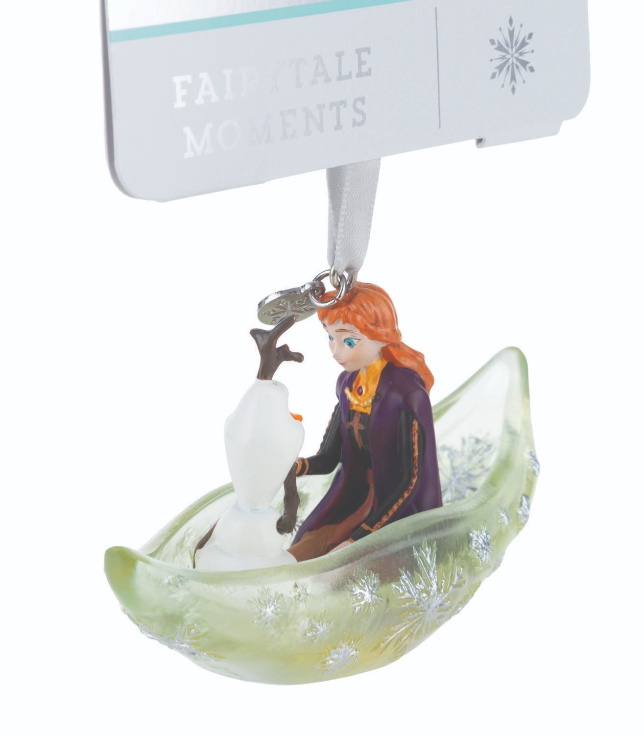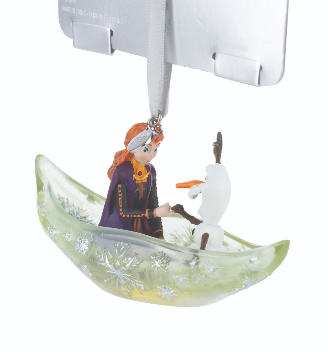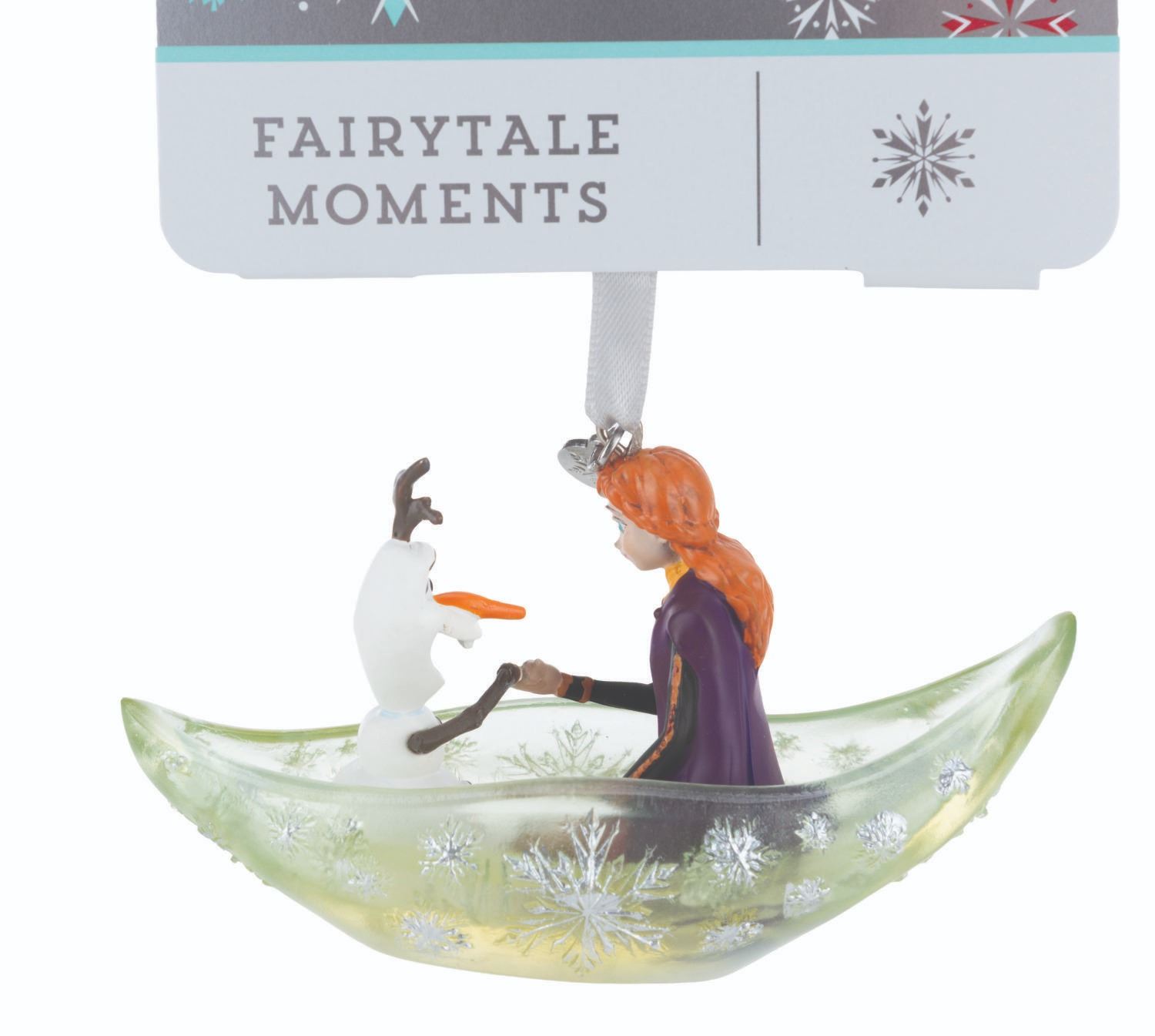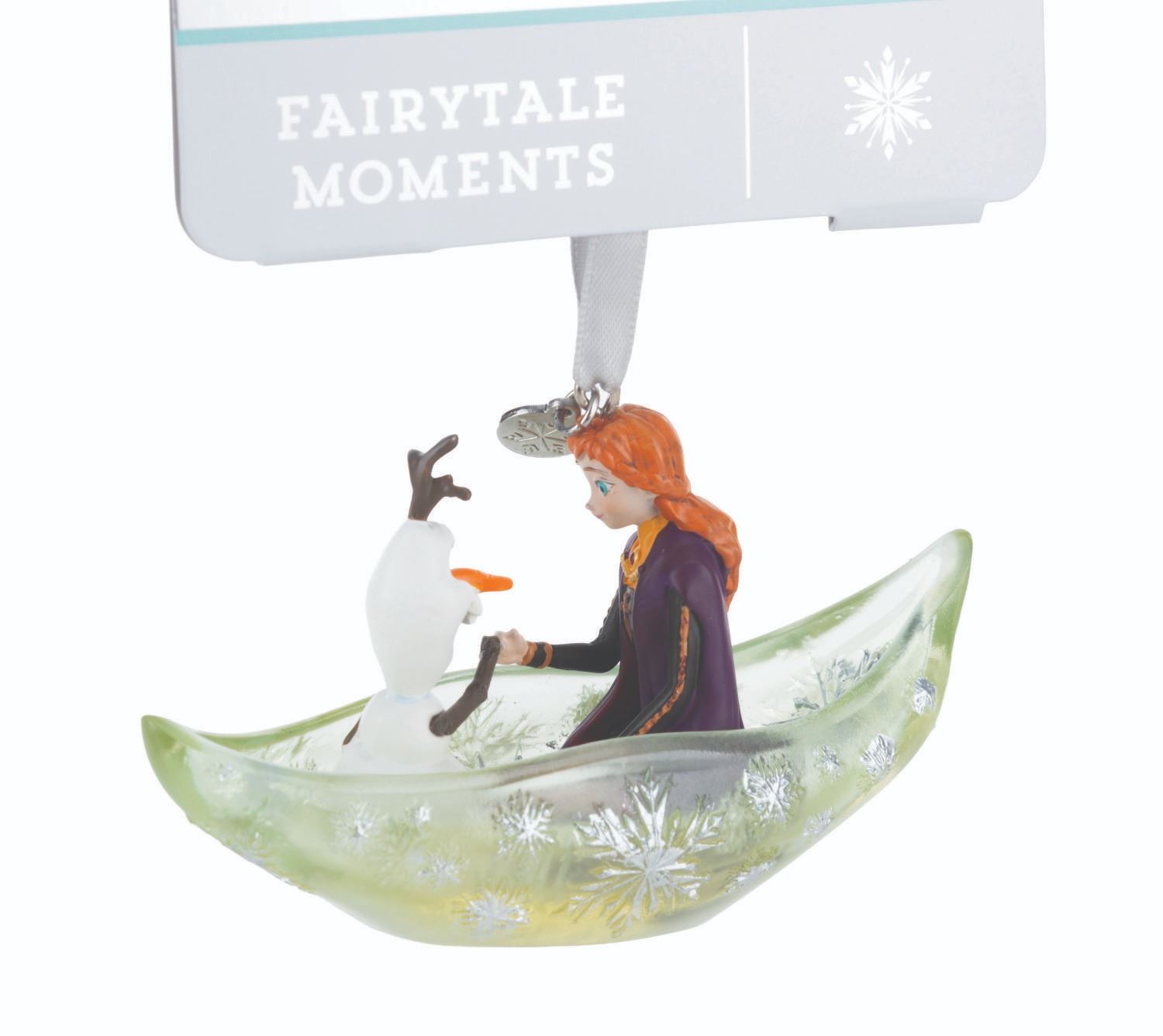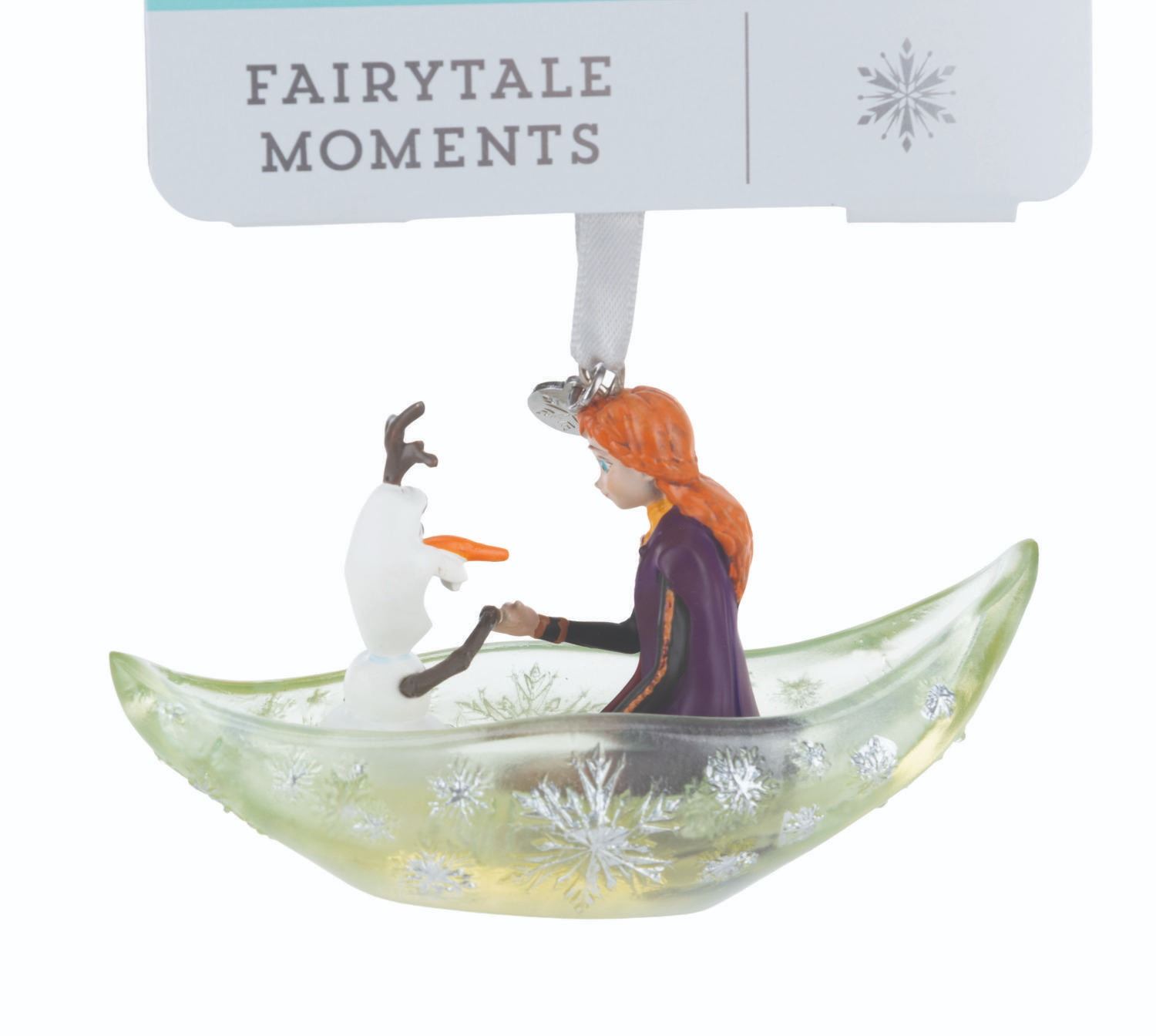 (Disney, 2020) A Sketchbook Fairytale Moments ornament of Anna and Olaf from "Frozen" in an ice boat. The ornament is in fine condition with the original box.