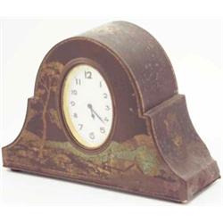 A Fryer & Co 'Victory V' lozenge clock tin, embossed and painted with a cottage landscape, 10 ins £50-60