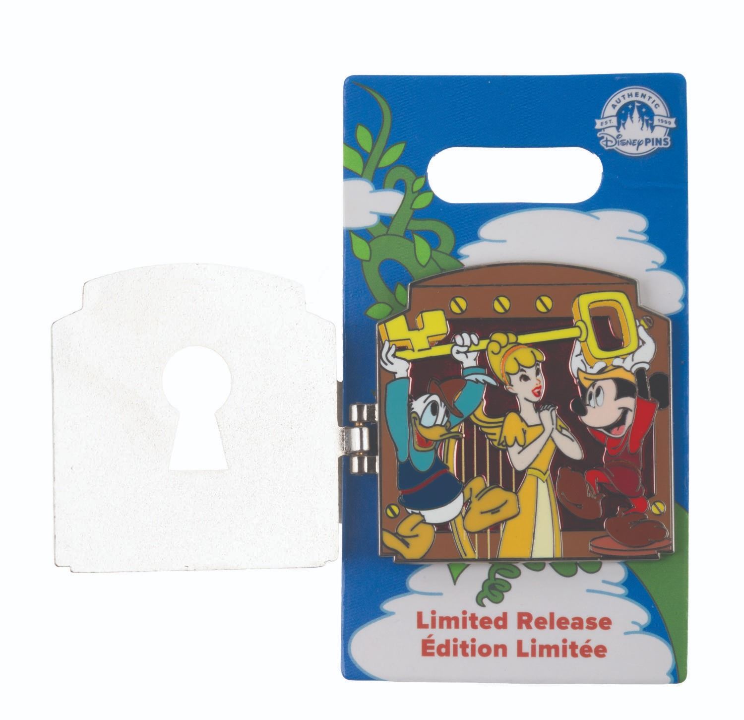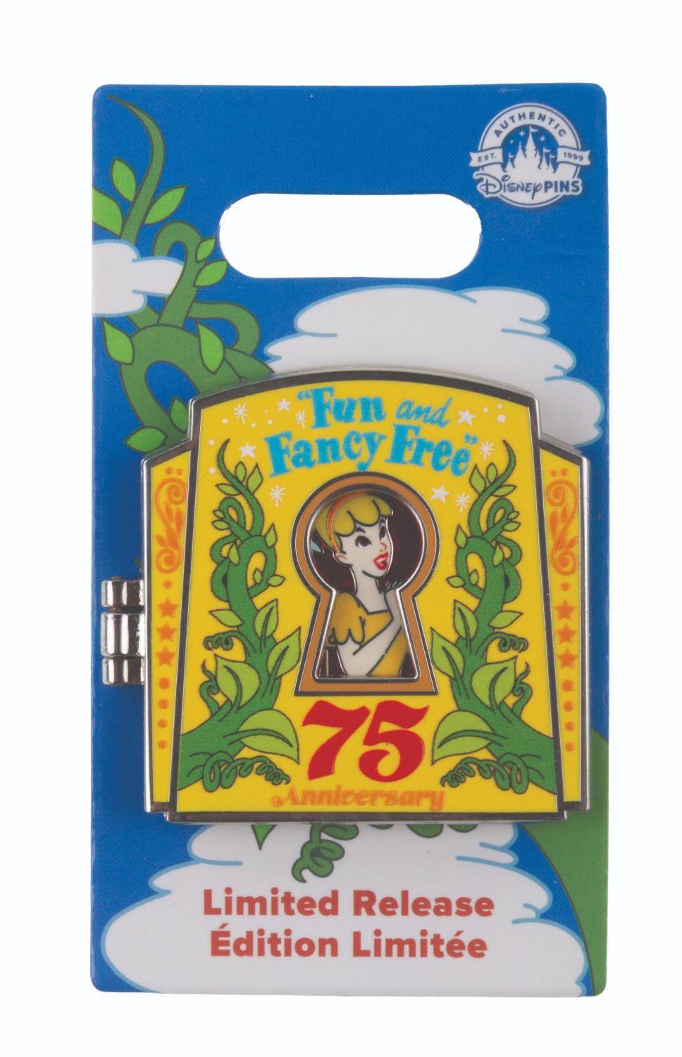 (Disney, 2022) A “Fun and Fancy Free” 75th anniversary pin with a hinge that opens to reveal Mickey, Donald, and the Golden Harp. The limited edition pin measures 1.75” x 1.75” and is in fine condition on the original card.