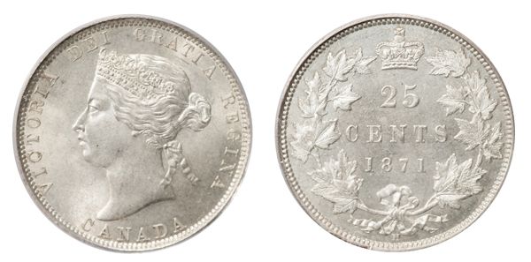 1871-H. Obverse port. #2. PCGS graded Mint State-65. A brilliant and lustrous gem, with outstanding satin fields. This example exhibits a great strike and great ‘eye appeal. A Gem!.