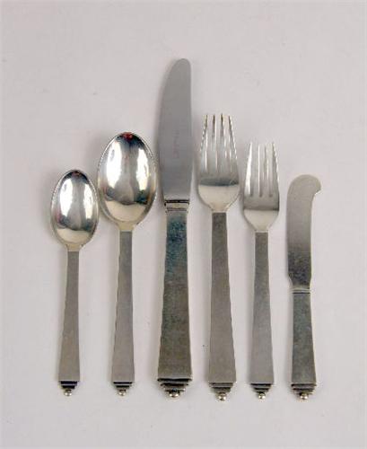 <b>A GEORG JENSEN "PYRAMID" PATTERN STERLING SILVER PARTIAL FLATWARE SERVICE</b>