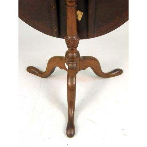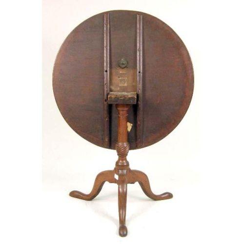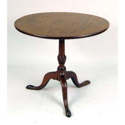 A GEORGE I CARVED MAHOGANY TILT-TOP TEA TABLE<BR><BR>English, various repairs, 27-1/2"h x 32"dia