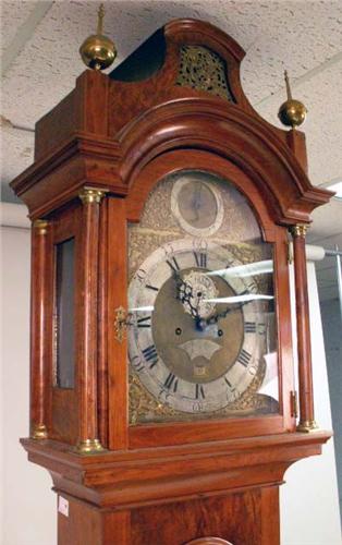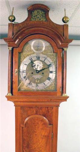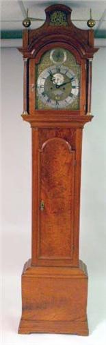 The dial marked "Batty Storr, Beverley". Reduced in height, some wear. 7`8"h x 21"w x 10 1/2"d.