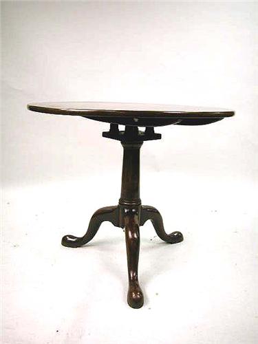 A GEORGE II FIGURED MAHOGANY TILT-TOP BIRD CAGE TEA TABLE; English, 28"h x 30"d