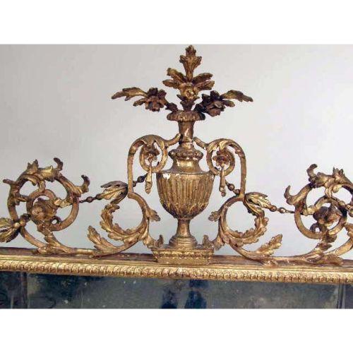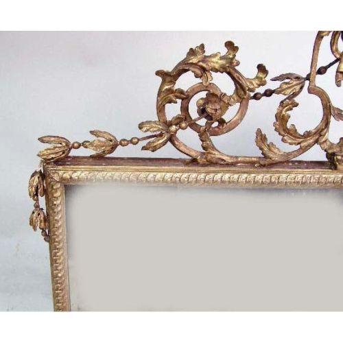 A GEORGE II GILTWOOD OVERMANTLE MIRROR<BR><BR>English, repairs and losSes, may retain its original plates, approximately 44"h x 4`10"w